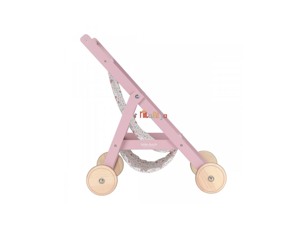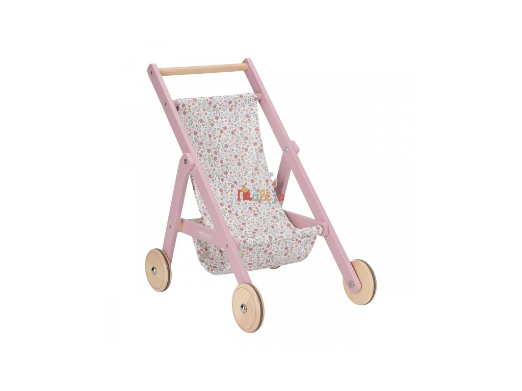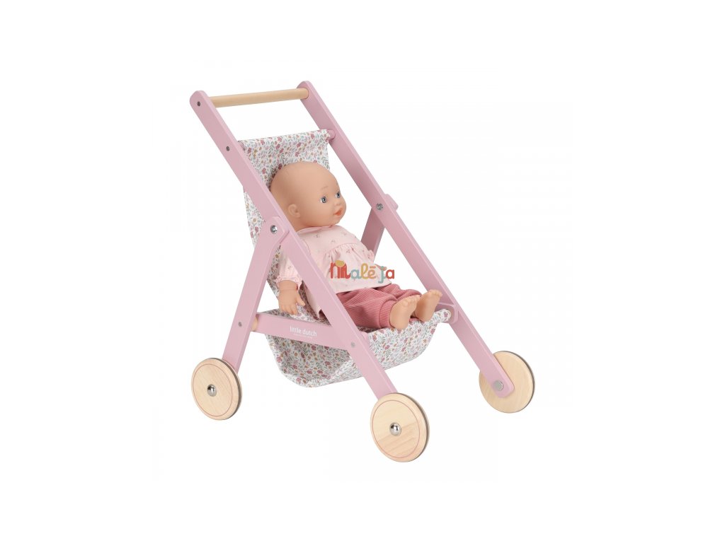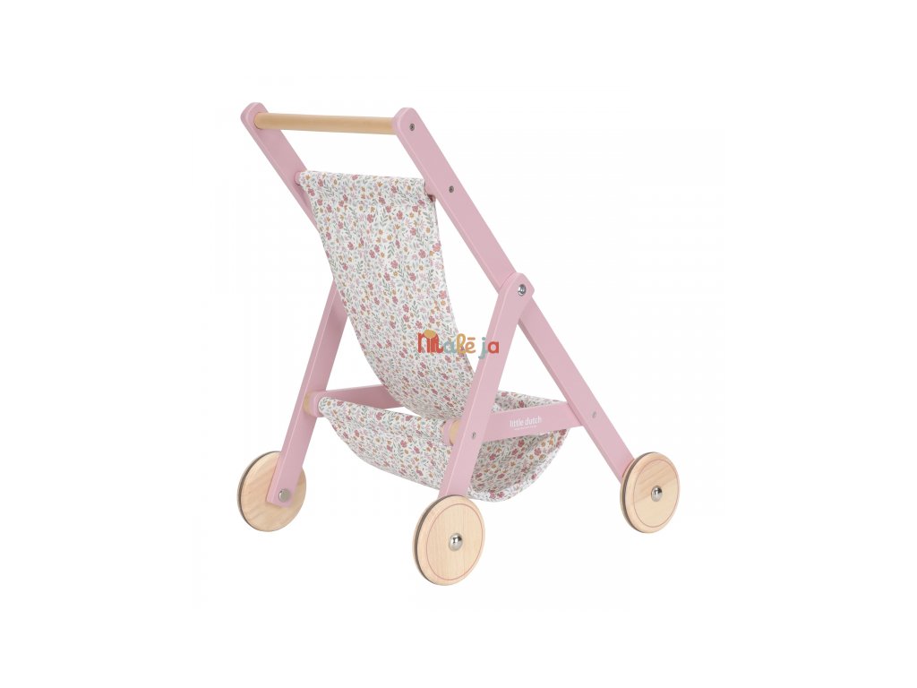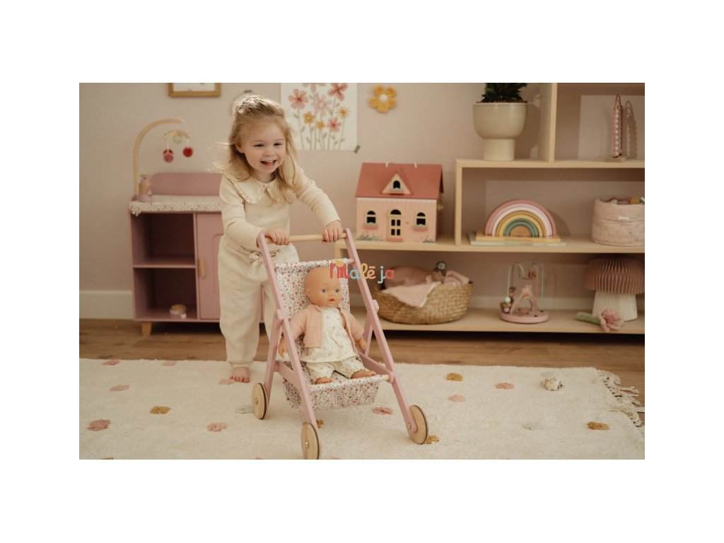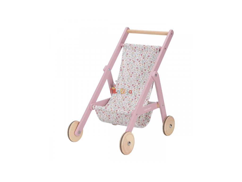 Tento drevený kočík pre bábiky je ideálnym spoločníkom na všetky prechádzky s bábikou či plyšákom. Robustná konštrukcia a tiché kolieska s gumovým poťahom zaisťujú plynulú jazdu bez poškodenia podlahy. Sedátko je potiahnuté látkou v romantickom kvetinovom dizajne, ktorý dodáva kočíku pôvabný vzhľad. Či už sa vydáte na výlet doma alebo vonku, bábika alebo plyšák budú vždy cestovať pohodlne a štýlovo. S týmto kočíkom si malí opatrovatelia užijú nekonečné hodiny hier a prechádzok. Kočík je vďaka kvalitnej drevenej konštrukcii veľmi stabilný. Vyrobené z odolného FSC® certifikovaného dreva. Rozmery: 44 x 31,5 x 51 cm Vhodné pre deti od 3 rokov.