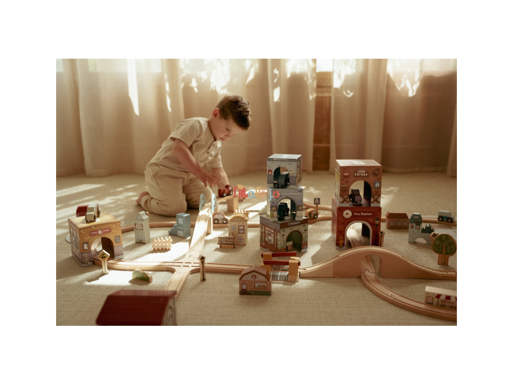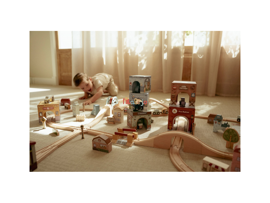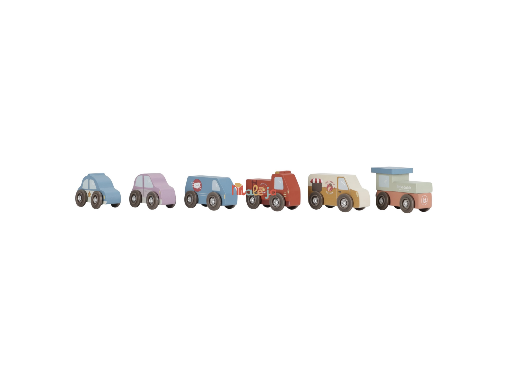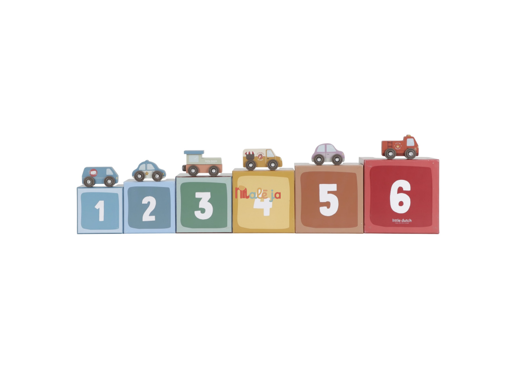 Deti môžu kocky stavať na seba do vysokej veže aj rozkladať ich po podlahe a vytvárať celé mestečko. Kocky možno skvele kombinovať aj s vláčikodráhou Little Dutch, kde vláčik aj autíčka pohodlne prejdú pod kockami ako pod mostami. Každá kocka má inú ilustráciu, ktorá podporuje rozvoj fantázie a každé vozidlo má svoje vlastné parkovacie miesto.