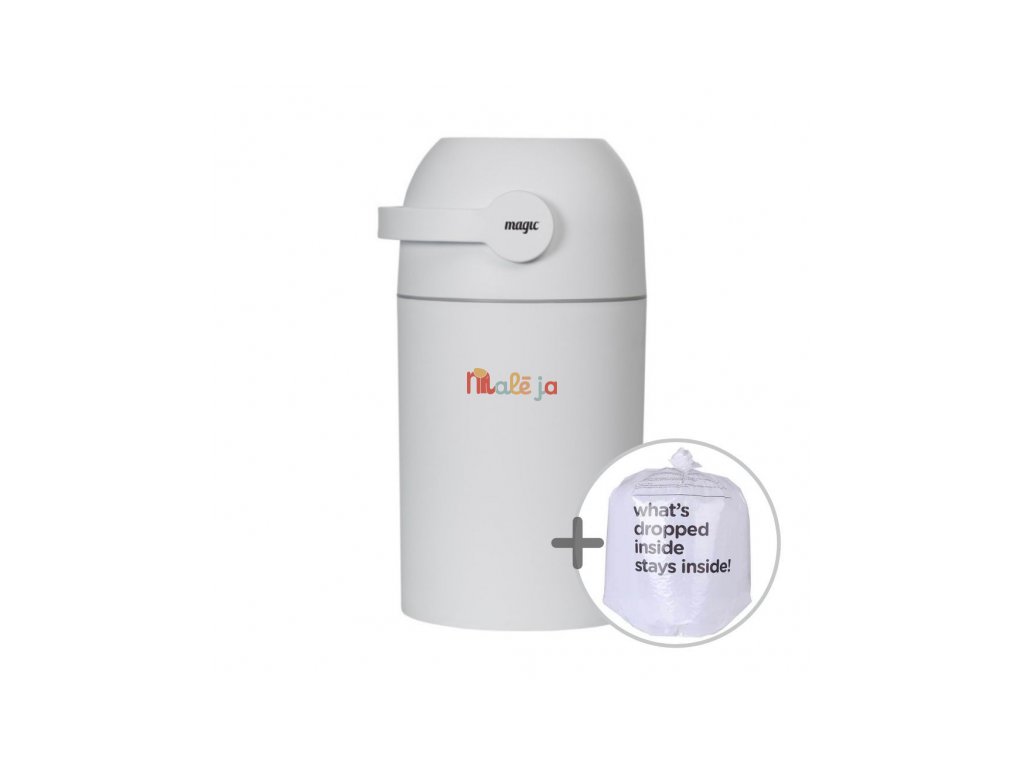 Patentovaný kôš na plienky Magic poskytuje ochranu pred nepríjemnými pachmi a baktériami v detskej izbe alebo kdekoľvek vo vašom interiéri. Použitú plienku ľahko vložíte do koša bez akéhokoľvek kontaktu s plienkami, ktoré už v koši sú. Otočením držadla plienka prepadne do koša a jeho otočením späť je kôš opäť pripravený na ďalšie použitie. To všetko jednou rukou, takže druhou môžete držať vaše bábätko. Špeciálny systém tesnenia udržuje zápach vo vnútri koša. Kôš s objemom 40 l pojme cca 25 plienok (počet plienok záleží na ich veľkosti), takže vám jeho kapacita vystačí na niekoľko dní. Aj vyprázdnenie koša je navrhnuté tak, aby sa neuvoľnil zápach v koši nahromadený. Kôš v modernom, minimalistickom dizajne dokonale zapadne do každého interiéru. Keď dieťa vyrastie, môžete kôš aj naďalej používať na odpadky. Kôš je vybavený aj detskou poistkou. Použitie koša je veľmi ekonomické, pretože nevyžaduje nákup špeciálnych náplní. Kôš je určený na použitie s bežnými vreckami na odpadky. Pre maximálnu ochranu pred zápachom odporúčame použitie originálnych vrecúšok navrhnutých do košov na plienky Magic. Tieto vrecká sú vyrobené z extra silného, 3-vrstvového materiálu, ktorý bráni pretekaniu. Samostatne predávané balenie obsahuje 45 ks sáčkov (3 rolky / 15ks) z recyklovaného materiálu. Balenie koša obsahuje rolu s 15 ks sáčkov zadarmo. Jedna rola vystačí na cca 375 plienok (počet plienok záleží na ich veľkosti). Materiál: PP Rozmery: 52 x 26 cm