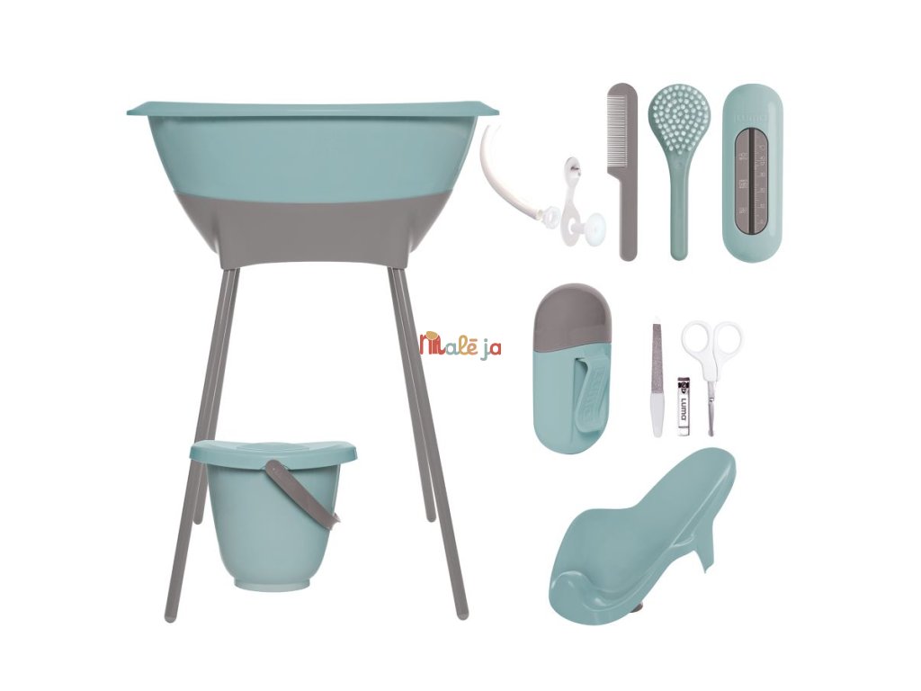 Máte radi krásne moderné veci a nechcete za ne minúť príliš veľa peňazí? Tak si vyberte LUMU. Sada všetkých výrobkov trendovej holandskej značky LUMA babycare, ktoré budete na kúpanie potrebovať pozostáva z detskej plastovej vaničky, stojana pod vaničku, vedierka na plienky s vekom, kúpacieho lehátka, kúpacieho teplomera, hrebienka a kefky, detské manikúry a odtokové hadice). Cena sady je zvýhodnená oproti nákupu po jednotlivých kusoch!