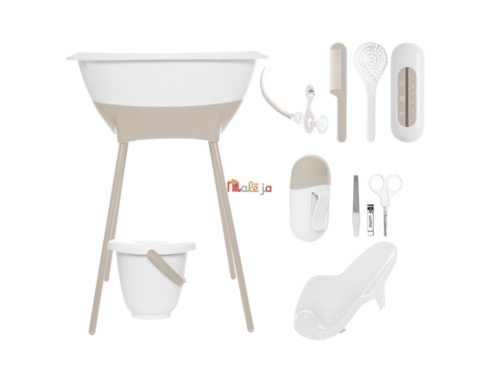 Máte radi krásne moderné veci a nechcete za ne minúť príliš veľa peňazí? Tak si vyberte LUMU. Sada všetkých výrobkov trendovej holandskej značky LUMA babycare, ktoré budete na kúpanie potrebovať pozostáva z detskej plastovej vaničky, stojana pod vaničku, vedierka na plienky s vekom, kúpacieho lehátka, kúpacieho teplomera, hrebienka a kefky, detské manikúry a odtokové hadice). Cena sady je zvýhodnená oproti nákupu po jednotlivých kusoch!