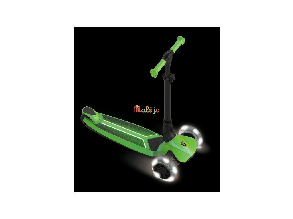 Kolobežka je vybavená svietiacou nášľapnou plochou a kolieskami, ktoré svietia počas jazdy (bez potreby batérií). Riadidlá sú výškovo nastaviteľné v 4 úrovniach, takže sa prispôsobia rastu dieťaťa.
