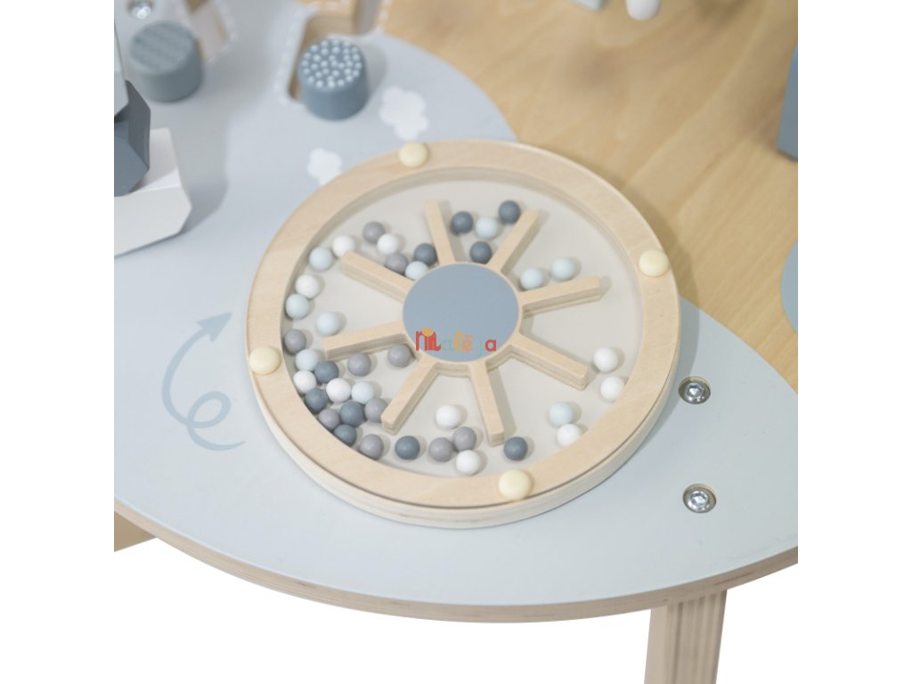 Vďaka veľkému oválnemu tvaru sa môže pri stole hrať súčasne aj viac detí, čo podporuje sociálnu interakciu, spoluprácu a spoločné objavovanie.