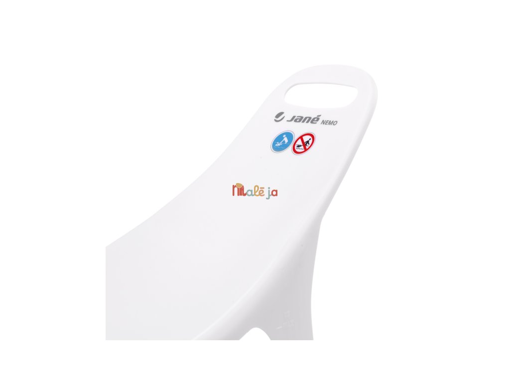 Lehátko do vaničky Jané Nemo premení kúpanie na pokojnejšiu a pohodlnejšiu rutinu už od prvých dní života vášho bábätka. Vďaka ergonomickému tvaru sa lehátko prispôsobí telíčku bábätka a poskytne mu stabilnú oporu, zatiaľ čo rodič má voľnejšie ruky na bezpečné a príjemné umývanie. Štyri oporné body a protišmykové nožičky zvyšujú stabilitu vo vaničke. Otvory na odtok vody umožňujú rýchlejšie oschnutie. Vďaka madlu lehátko môžete po kúpaní zavesiť pre ľahké skladovanie.