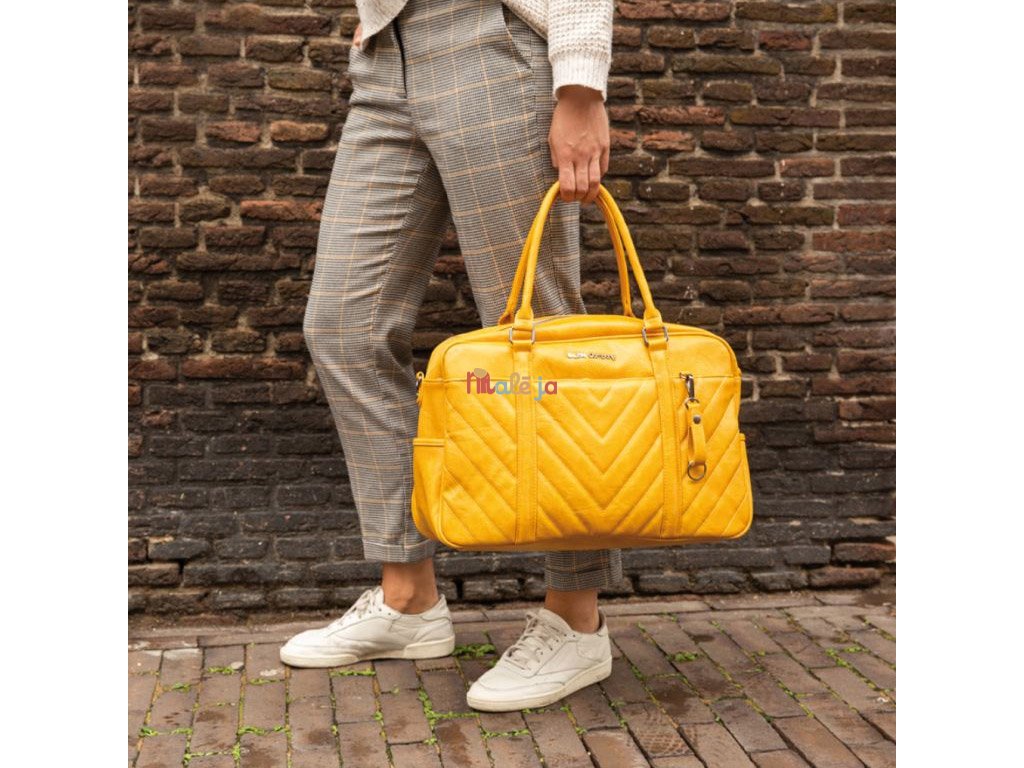 Máte rada výrazné farby, ktoré niečo ukážu? My tiež, a preto sa nám novinka v kolekcii Little Company sýto žltá prebaľovacia taška Amsterdam tak páči. Tá teda ako taška na plienky nevyzerá. Hlavná priehradka obsahuje niekoľko vreciek na uloženie a pre organizovanie potrieb pre vaše dieťa, ako sú plienky, obrúsky a cumlíky. Do jednej z postranných priehradiek môžete ľahko vložiť fľaštičku alebo nádobu s výživou. Vďaka svetlej a farebnej podšívke tašky môžete rýchlo nájsť svoje veci. Taška je vybavená popruhmi na upevnenie ku kočíku, odnímateľným ramenným popruhom a prebaľovacou podložkou. Okrem hlavnej priehradky je k dispozícii oddelená priehradka so zipsom, ktorá je dostatočne veľká pre dokumenty a dokonca pre váš laptop. Ponúka tak miesto pre vaše osobné veci. Stručne povedané, všetko, čo od tašky na plienky potrebujete, máte v tejto štýlovej taške na rameno.