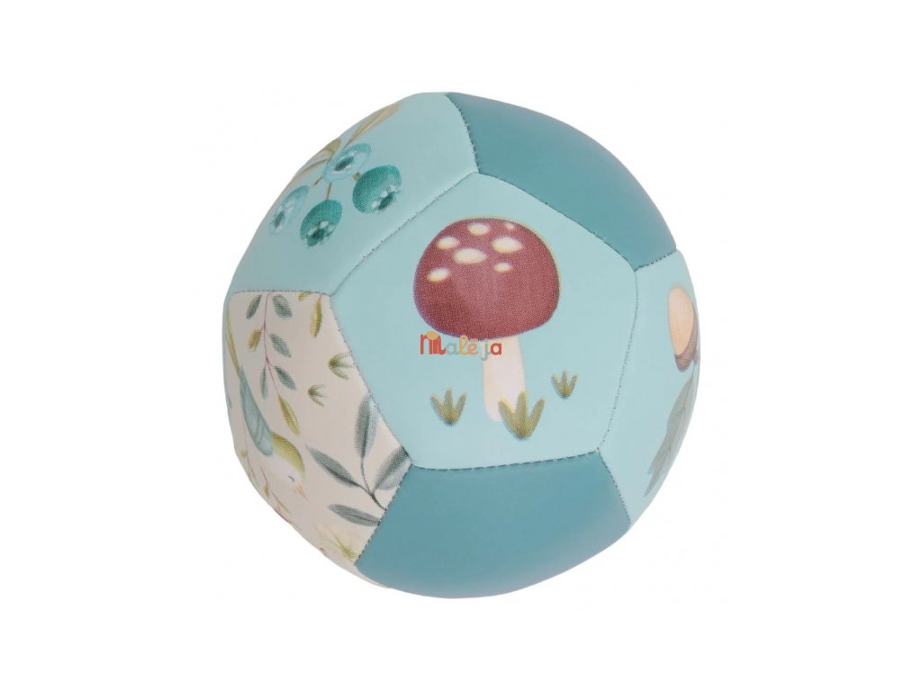Mäkká loptička s krásnou potlačou motívov zo života v lese sa deťom ľahko drží aj kotúľa.