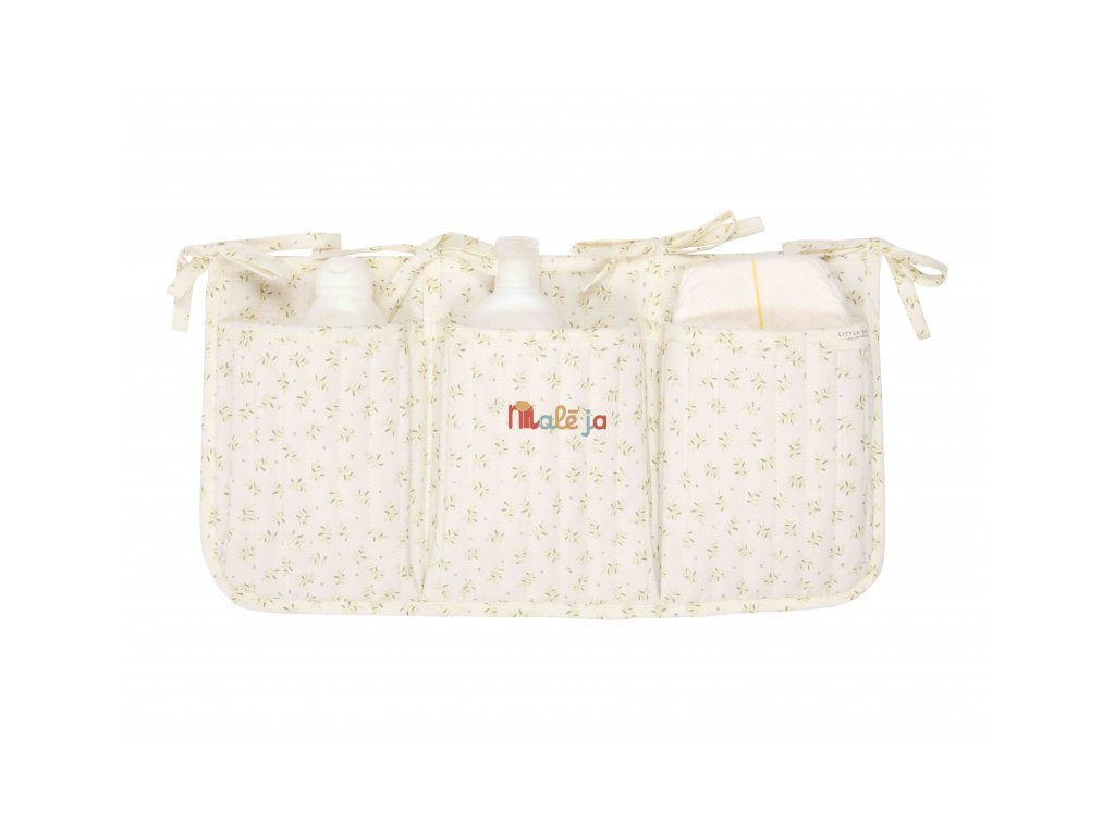 Praktický závesný organizér v krásnom prevedení s nežnou potlačou vám umožní mať všetko potrebné na starostlivosť o vaše bábätko vždy po ruke. Organizér zo 100% organickej bavlny ponúka tri priestranné vrecká na uloženie cumlíkov, podbradníkov, plienok, obrúskov, hračiek a pod. Pomocou praktických viazacích šnúrok ho ľahko pripevníte k prebaľovaciemu pultu, na stenu či na postieľku.