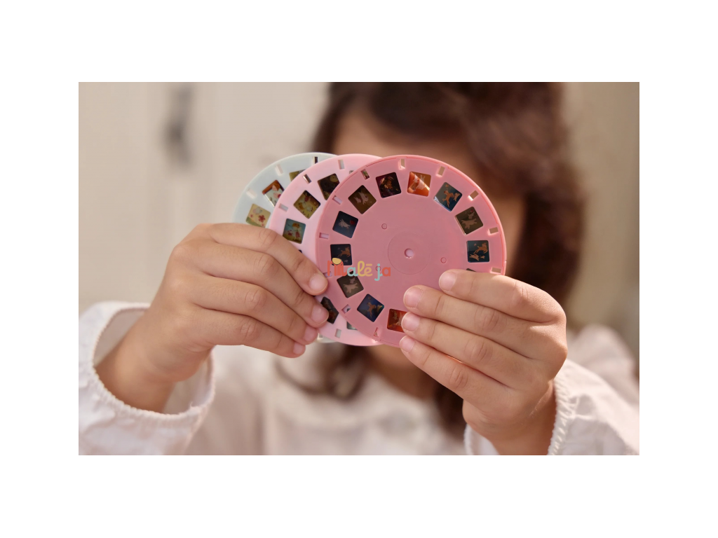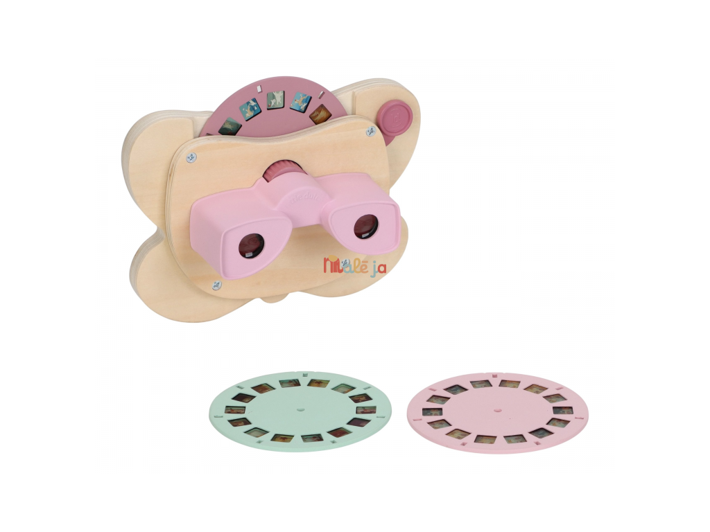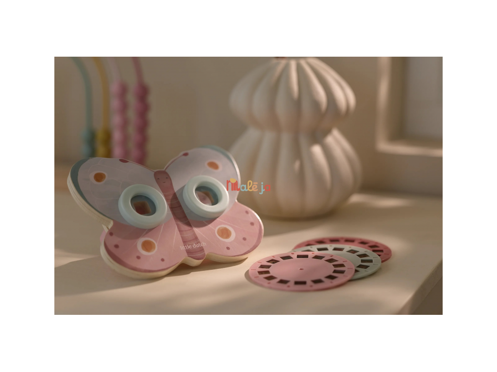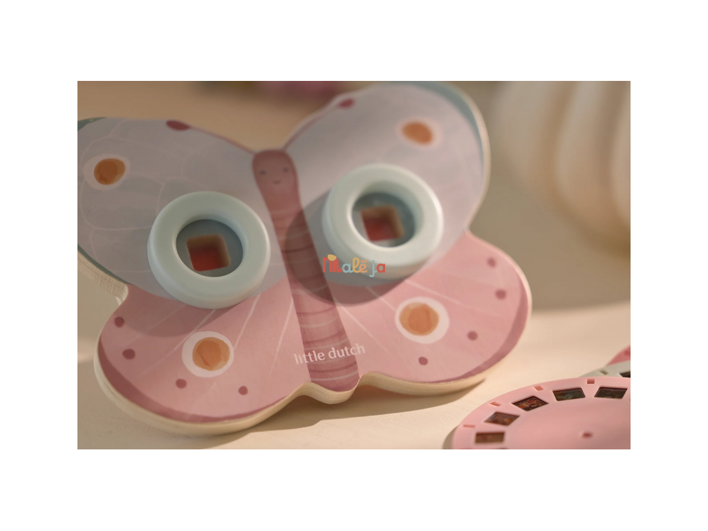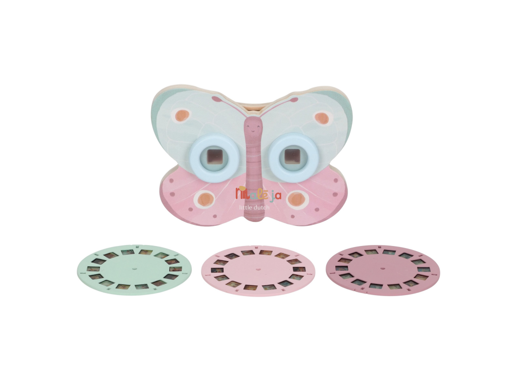 Prohlížeč příběhů Little Dutch je kouzelná hračka, která děti vtáhne do světa vyprávění a fantazie. Má podobu něžného motýla a funguje jednoduše: stačí otáčet kotoučky a před očima se odvíjejí obrázkové příběhy z lesa. Součástí jsou tři výměnné kotouče s příběhy ze života na zahradě. Ideální pro klidné chvíle před spaním i společné vyprávění s rodiči. Hračka podporuje rozvoj řeči, představivost a schopnost tvořit vlastní příběhy.