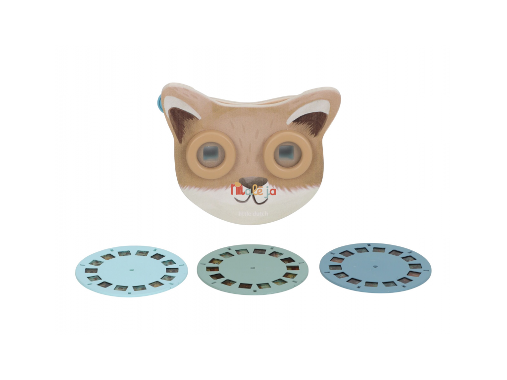 Prohlížeč příběhů Little Dutch je kouzelná hračka, která děti vtáhne do světa vyprávění a fantazie. Má podobu roztomilé lišky a funguje jednoduše: stačí otáčet kotoučky a před očima se odvíjejí obrázkové příběhy z lesa. Součástí jsou tři výměnné kotouče s příběhy kamarádů z lesa. Ideální pro klidné chvíle před spaním i společné vyprávění s rodiči. Hračka podporuje rozvoj řeči, představivost a schopnost tvořit vlastní příběhy.