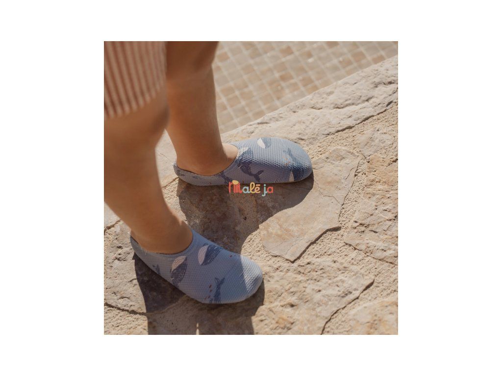 Topánky do vody z pružného materiálu s krásnou potlačou ochránia nožičky vášho dieťaťa pred horúcim plážovým pieskom aj pred pošmyknutím pri bazéne. Elastické prevedenie uľahčuje obúvanie aj vyzúvanie topánočiek. Zloženie: 94% recyklovaný nylon, 6% spandex Možno prať v práčke na 30 °C. Po každom použití prepláchnite v čistej studenej vode.