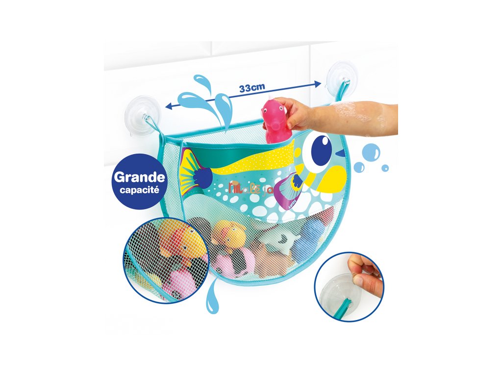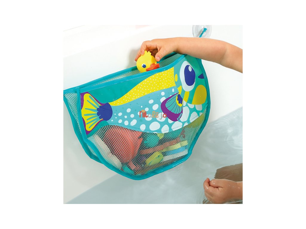 Originálny skladací kôš na hračky vo veselom dizajne ryby ponúka múdre riešenie, ako mať kúpeľňu upratanú hneď po kúpaní. Kôš ľahko pripevníte vďaka dvom prísavkám nad vaňu. Sieťovinové diely umožňujú odtok vody z uložených hračiek a ich vyschnutie.
