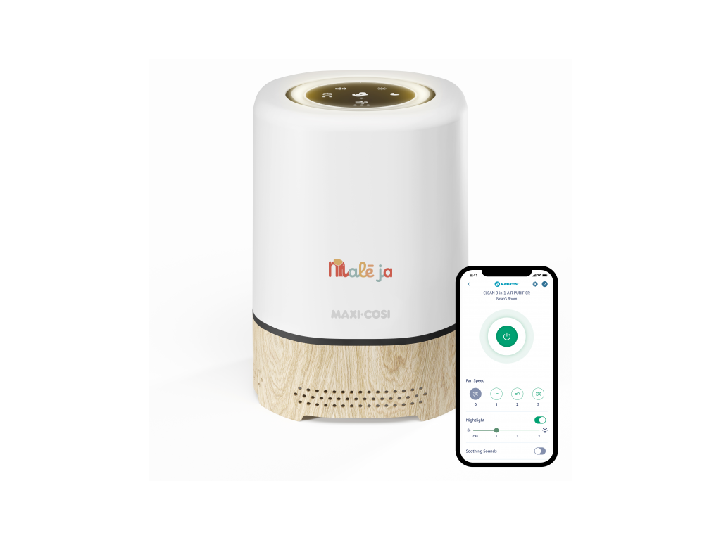 Čistička vzduchu Maxi-Cosi 3v1 Clean je inteligentné zariadenie do detskej izby, ktoré pomáha vytvoriť čisté a pokojné prostredie pre spánok aj každodennú pohodu. V jednom prístroji kombinuje čističku vzduchu, nočné svetlo a reproduktor s upokojujúcimi zvukmi. Vďaka výkonnej HEPA 13 filtrácii odstraňuje zo vzduchu až 99,97% prachu, peľu, alergénov a ďalších častíc, takže sa vášmu dieťaťu dýcha lepšie vo dne aj v noci. Nastaviteľné svetlo a 4 upokojujúce zvuky vám umožnia vytvoriť príjemnú atmosféru pred zaspávaním. Všetko pohodlne nastavíte aj na diaľku cez aplikáciu Maxi-Cosi Connected Home.