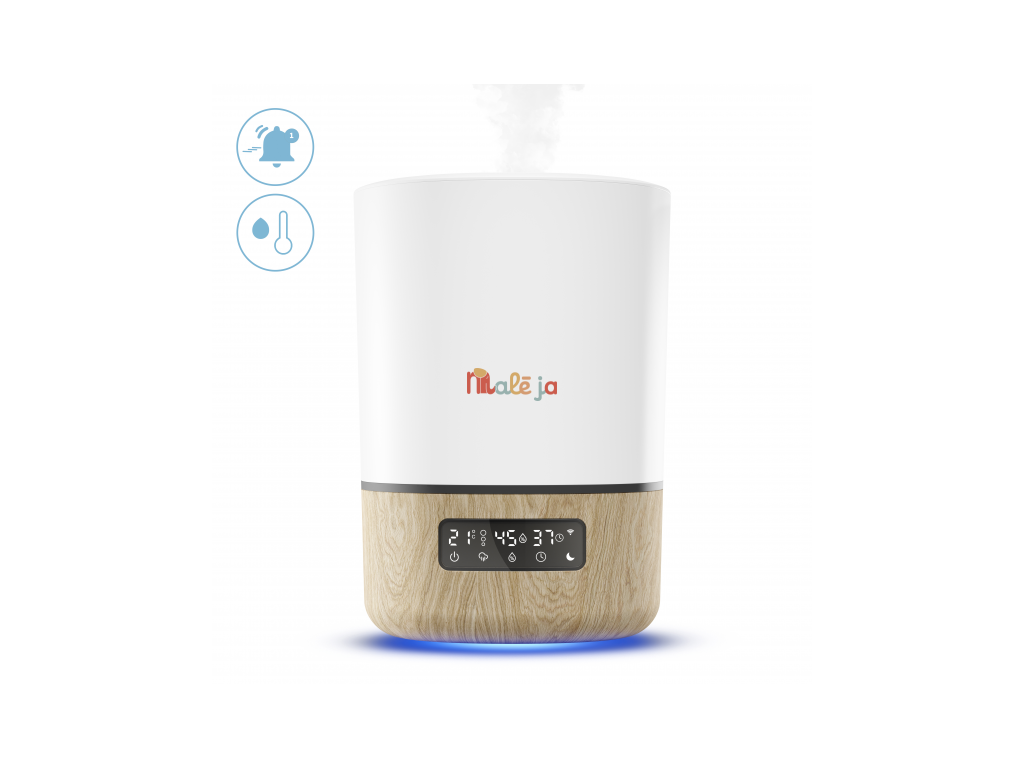 Zvlhčovač vzduchu Maxi-Cosi je šikovný zvlhčovač vzduchu do detskej izby, ktorý pomáha udržať ideálnu vlhkosť pre pokojný spánok dieťaťa. Vďaka sade senzorov zvládne pracovať plne automaticky, keď sám zvolí optimálnu vlhkosť podľa teploty v miestnosti. Ak chcete, môžete všetko nastaviť ručne: cieľovú vlhkosť, intenzitu hmly aj časovača. Všetko pohodlne nastavíte aj na diaľku cez aplikáciu Maxi-Cosi Connected Home. Prístroj funguje aj ako difuzér esenciálnych olejov pre vytvorenie príjemnej atmosféry pre odpočinok a zaspávanie.