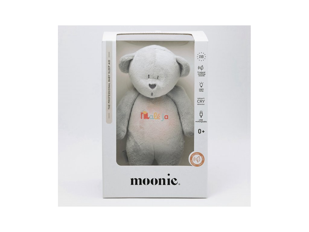 Moonie upávačik v podobe rozkošného medvedíka s nočným svetlom a relaxačnými zvukmi pomáha bábätku upokojiť sa a ľahšie zaspať. Upokojujúce zvuky pripomínajú dieťaťu prostredie v maternici mamičky pred jeho narodením. Uspávačik ponúka päť prírodných relaxačných zvukov (tlkot srdca, vietor, lesný potok, morské vlny, dážď), kalimba uspávanku, dve klasické uspávanky a umožňuje nahranie vlastného hlasu.