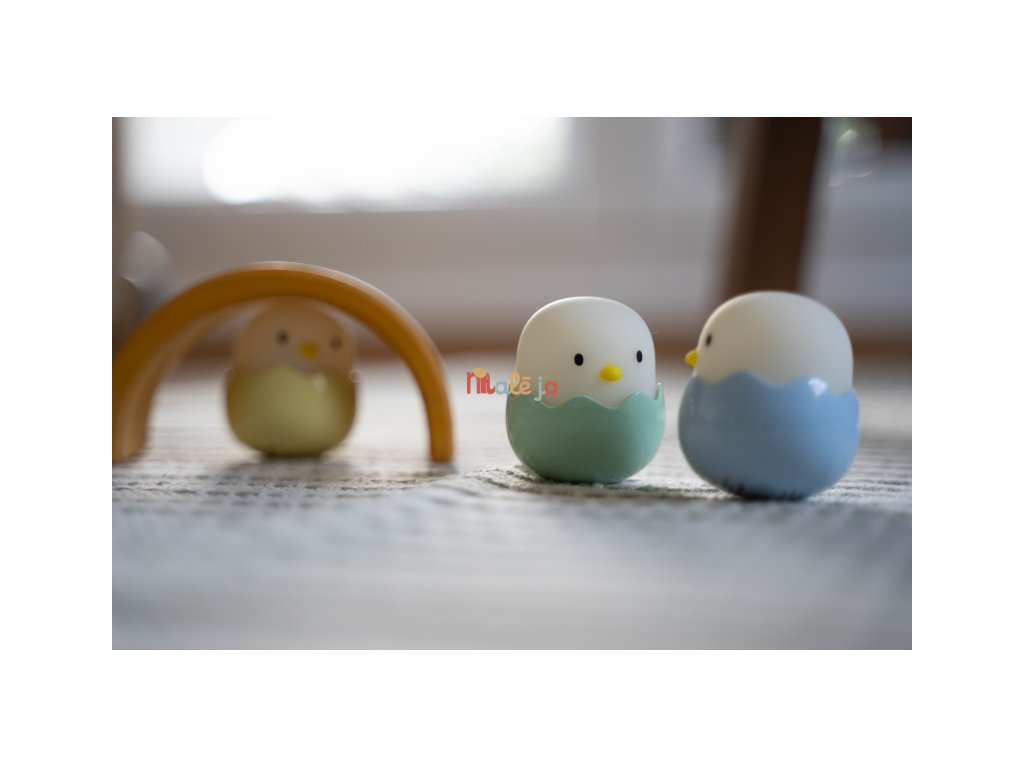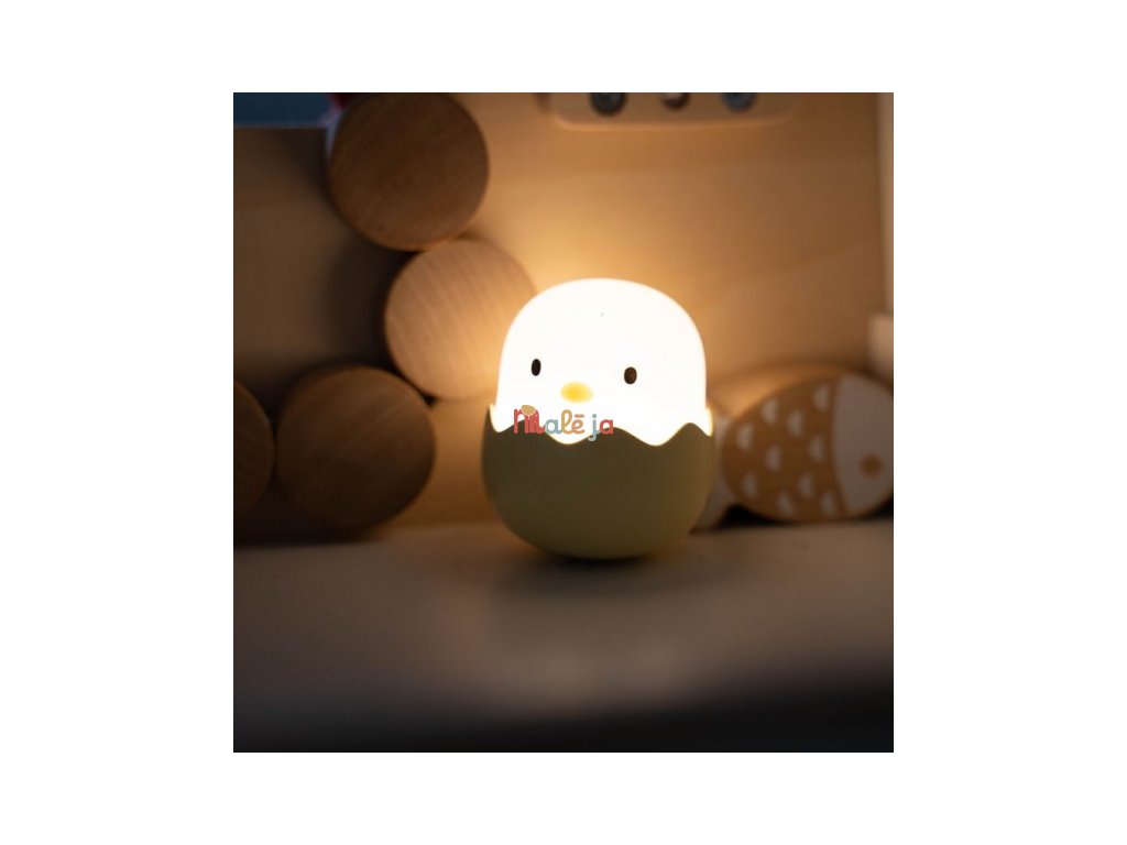 Nočné svetlo MegaLight Baby Eggy Egg v podobe rozkošného kuriatka poskytne vášmu dieťaťu pocit bezpečia a pomôže mu tak zaistiť pokojný spánok. Vďaka svojmu dizajnu bude aj krásnou dekoráciou v detskej izbe. LED svetlo s nabíjacou batériou na výber teplé biele svetlo a 7 RGB farieb regulácia intenzity svetla ľahké ovládanie dotykom životnosť batérie až 200 hodín pri stlmenom režime, 5 hodín pri maximálnom jase nabíjanie s pomocou priloženého USB-C kábla testované v súlade so smernicami o hračkách Zloženie: ABS, HIPS, silikón Rozmery: 50 x 50 x 57 mm Vhodné pre deti od narodenia.