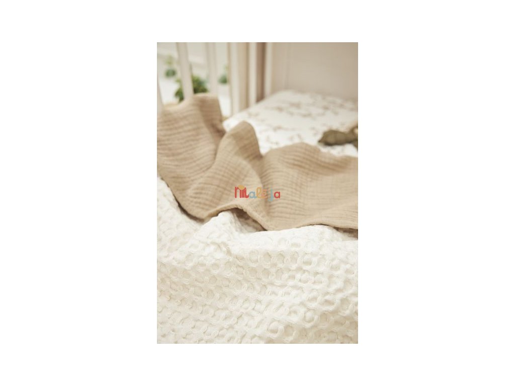 Je vyrobena ze 100% nebělené bavlněné vaflové látky na přední straně, zadní stranu má z krásně měkké nebělené bavlny. Nebělená bavlna se vyrábí bez použití škodlivých chemikálií a bělicích činidel, díky čemuž přispívá k udržitelnějšímu světu.