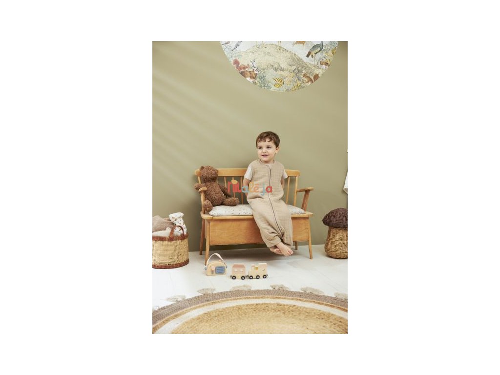 Pohodlný a prodyšný spací vak s otvory pro nožičky.Mušelínová bavlna velmi dobře dýchá, výborně absorbuje vlhkost a rychle schne. Vyrobeno ze 100% předeprané mušelínové bavlny.