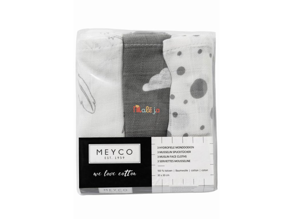 Kód: 457002 EAN: 4054703457025Materiál: 100% bavlnaBalení obsahuje 3 ks.Rozměr: 30 x 30 cmLze prát maximálně na 60 stupňů (extra hygienické)Vhodné do sušičkyLze žehlit (nevyžehlené přijímají více vlhkosti) Informace o výrobci MEYCO b-boo baby & lifestyle GmbHTackenweide 5446446 Emmerich am RheinGermany Phone number: +49 (0)2822 976500 https://www.meycobaby.com/E-mail: info@meycobaby.com Bezpečnostní upozorněníVýrobek není hračka. Nevystavujte blízkosti ohně. Plastový obal držte mimo dosah dítěte, hrozí nebezpečí udušení.
