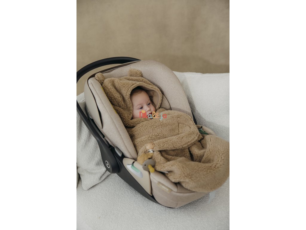 Super měkká a praktická zavinovací deka. Díky otvorům na zadní straně ji můžete snadno připevnit v autosedačce pomocí tříbodového nebo pětibodového pásu. Vaše dítě tak bude v teple a bezpečí. Můžete využít i v kočárku.Vnější strana je vyrobena z příjemně hebkého plyšového materiálu a kapuce má rozkošná ouška, prostě neodolatelná! Tato deka je speciálně navržena pro nejmenší miminka a nabízí teplo, pohodlí a pocit bezpečí, ať jste kdekoli.