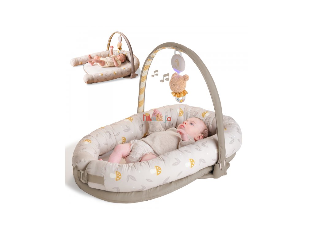Hnízdo pro miminko Taf Toys je praktický doplněk, který roste spolu s dítětem. V prvních týdnech slouží jako měkké, bezpečně obepínající hnízdo, ve kterém se novorozenec lépe zklidní a odpočívá. Od třech měsíců věku dítěte lze hnízdo rozložit a využít jako pohodlný prostor pro hraní. Součástí odnímatelné hrazdy je plyšový medvídek se světýlky a 22 minutami uklidňujících melodií, které pomáhají miminko zabavit i uklidnit. Hudební medvidek je použitelný i samostatně.