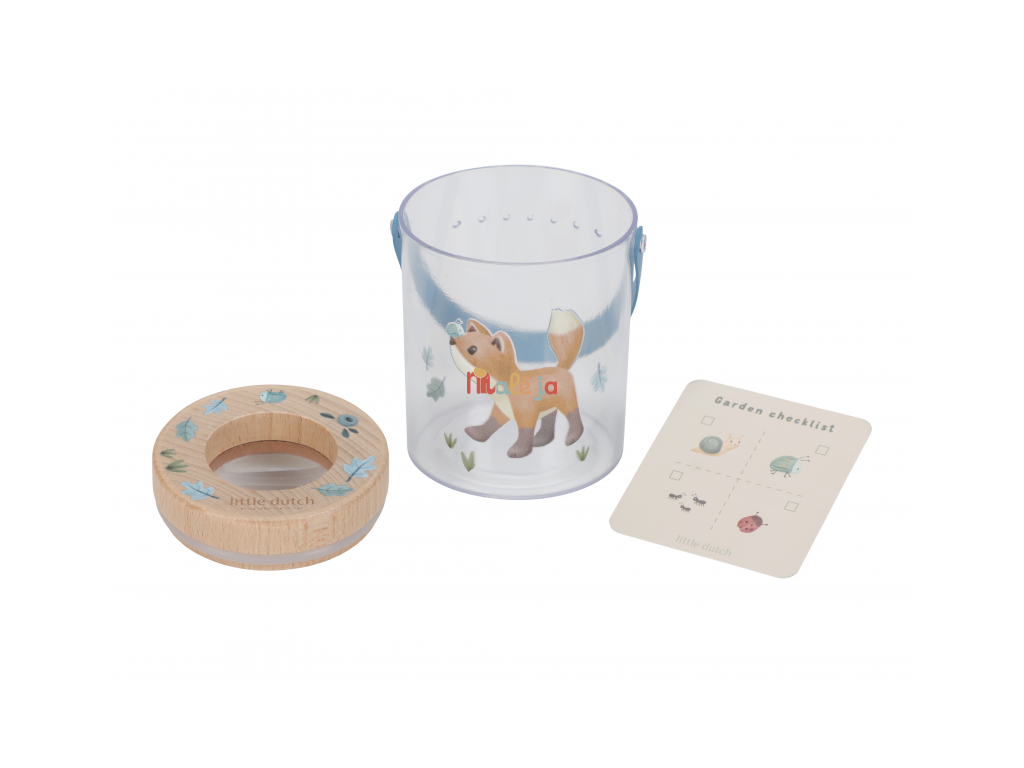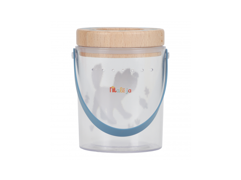 Nádoba na hmyz s krásnou potlačou umožní vášmu dieťaťu bezpečným spôsobom pozorovať hmyz, ktorý žije na záhrade alebo v lese. Nádobka z priehľadného plastu má drevené viečko s lupou na skúmanie aj tých najmenších detailov. Vetracie otvory zaisťujú vetranie v nádobke. Vďaka držadlu sa nádobka ľahko prenáša.