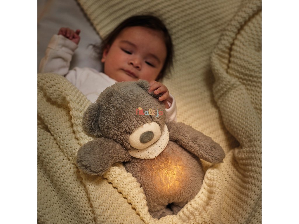 Psík na spanie Nattou je krásnej mäkkej kvality s príjemnou výplňou. Spiaci psík má v brušku svetielko, ktoré sa môže meniť medzi siedmimi farbami a zvukom, s bielym šumom, morom, tlkotom srdca a dvoma upokojujúcimi uspávankami, ktoré pomáhajú zabezpečiť pokojný spánok. Zvuky spiaceho psíka sa aktivujú automaticky, keď započuje plač dieťaťa a zvuky automaticky prestanú po 15 minútach. Svetlo spiaceho psíka vychádza z LED diódy v brušku, takže svetlo je tlmené textíliou psíka a neprehrieva sa, teda svetlo môže bez problémov svietiť celú noc.