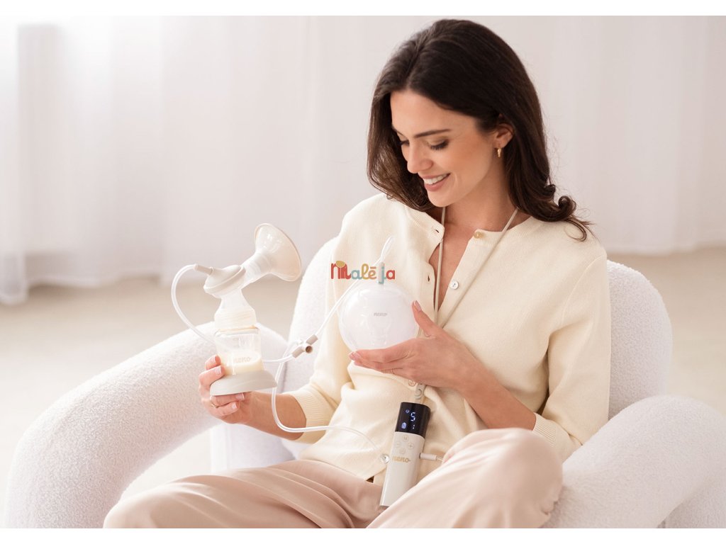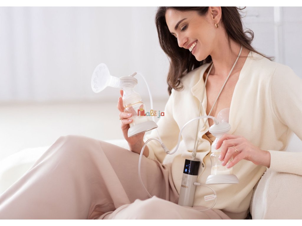 - Dvojitý spôsob odsávania – súčasne odsáva mlieko z oboch pŕs, čím šetrí čas a zvyšuje efektivitu
