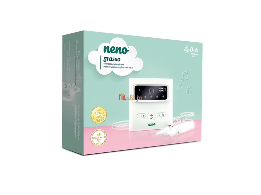Neno Grasso je bezkáblový elektronický nosový odsávač hlienov pre deti od narodenia až do 6 rokov. Profesionálny pomocník pre jednoduché a účinné uvoľnenie dýchania vášho dieťaťa. Šetrne a efektívne odstraňuje hlieny rôznej hustoty, uľahčuje dýchanie a zlepšuje pohodu detí počas nádchy aj v bežných situáciách.