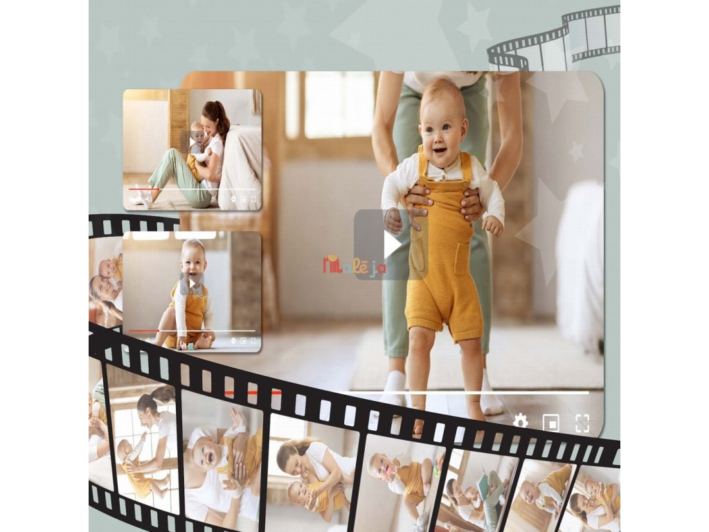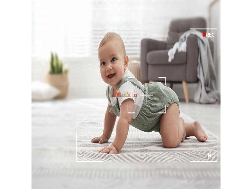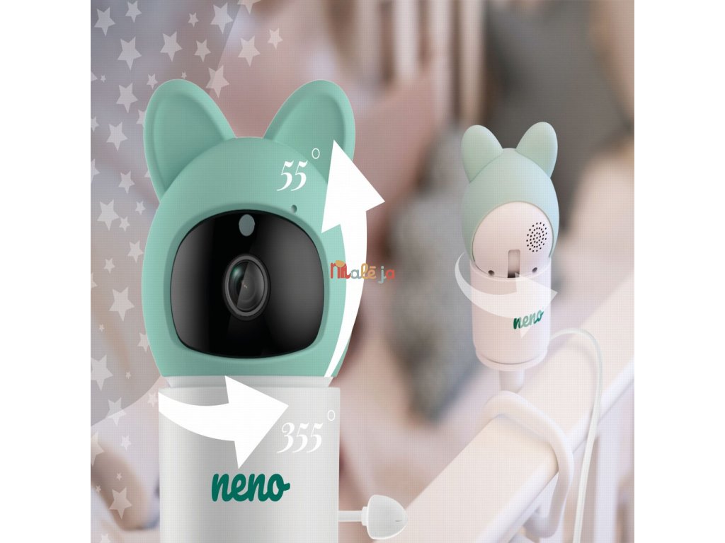 - Otočná hlava kamery – horizontálne 355°, vertikálne 55° – sleduje každý pohyb dieťaťa.