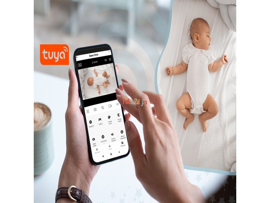 - Detekcia pohybu a zvuku – okamžité upozornenia v aplikácii TUYA.