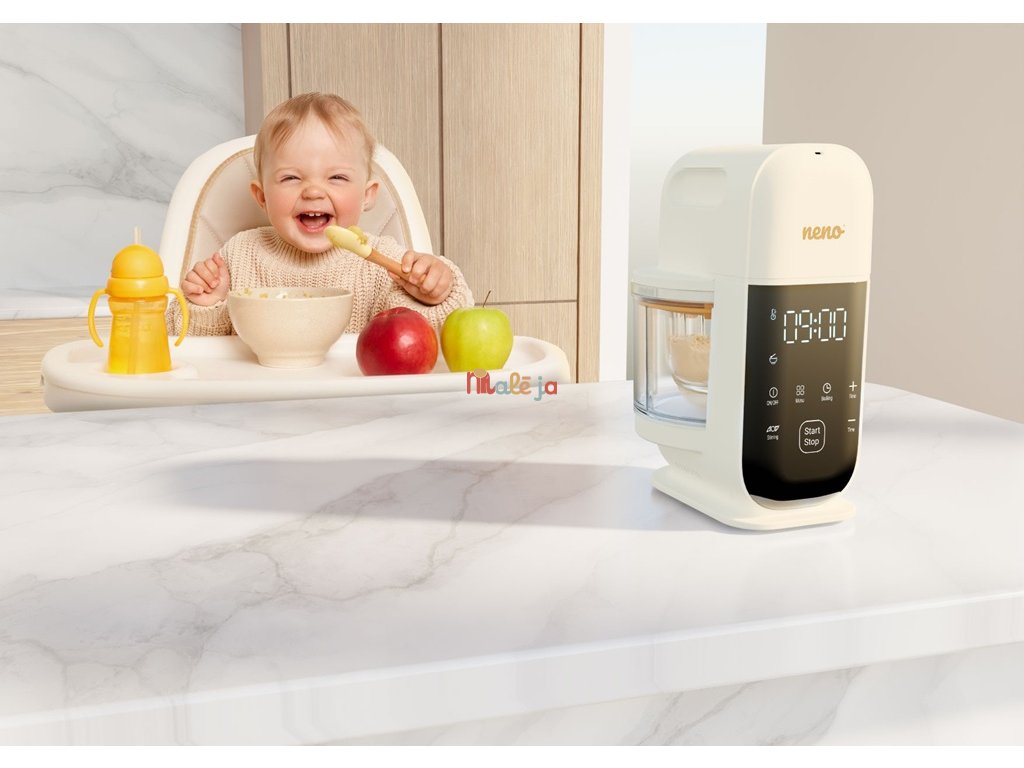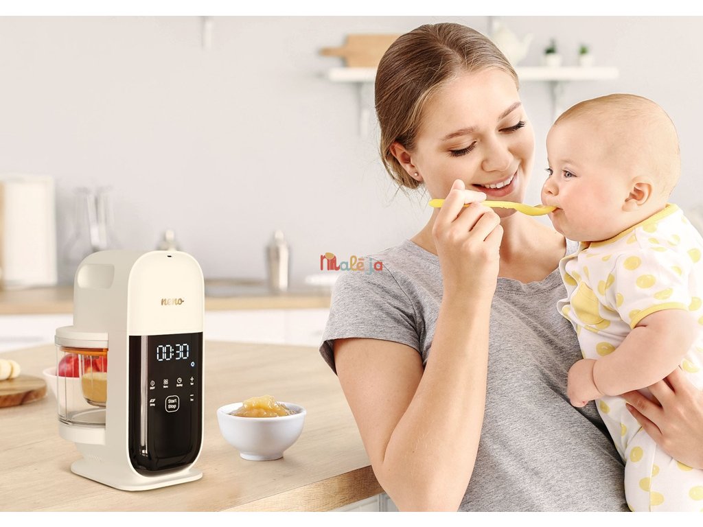 S Neno Oro sa varenie stáva jednoduchým, rýchlym a bez neporiadku! Tento multifunkčný prístroj kombinuje varenie v pare a automatické mixovanie, vďaka čomu zachováva cenné živiny a šetrí riad v kuchyni. Všetko, čo potrebujete na prípravu jedál pre vaše dieťa – v jednom kompaktnom zariadení.