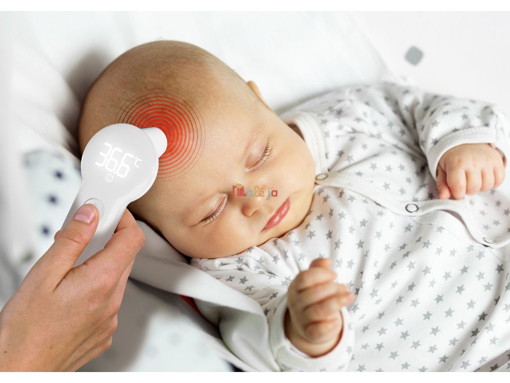 - Meranie teploty na čele: Meranie teploty na čele je obzvlášť užitočné pre novorodencov a malé deti. Zmeria teplotu za 1 sekundu.