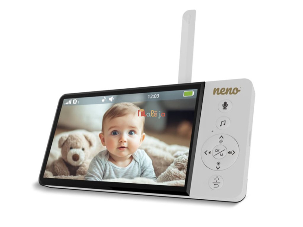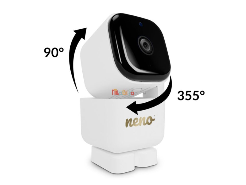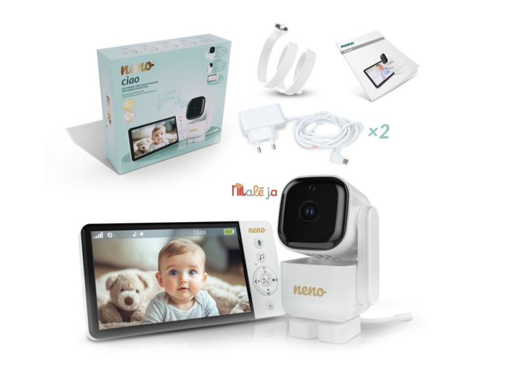 Neno Ciao je moderná elektronická videopestúnka s bezdrôtovým prijímačom a 5-palcovým displejom. Vďaka otočnej kamere s funkciou Pan & Tilt (355° horizontálne, 90° vertikálne) môžete sledovať celú miestnosť z pohodlia kdekoľvek. Monitor je vybavený dvojsmernou komunikáciou, snímačom teploty, 8 upokojujúcimi uspávankami a nočným režimom, ktorý podporuje starostlivosť počas dňa aj noci. Vďaka VOX technológii sa obrazovka zapne len pri detekcii zvuku, čím šetrí energiu. Silná vstavaná batéria prijímača umožňuje používanie až do 12 hodín bez nabíjania. Monitor má dosah až 300 metrov na otvorenom priestranstve a podporuje pripojenie ďalšej kamery pre rozšírenie dohľadu.