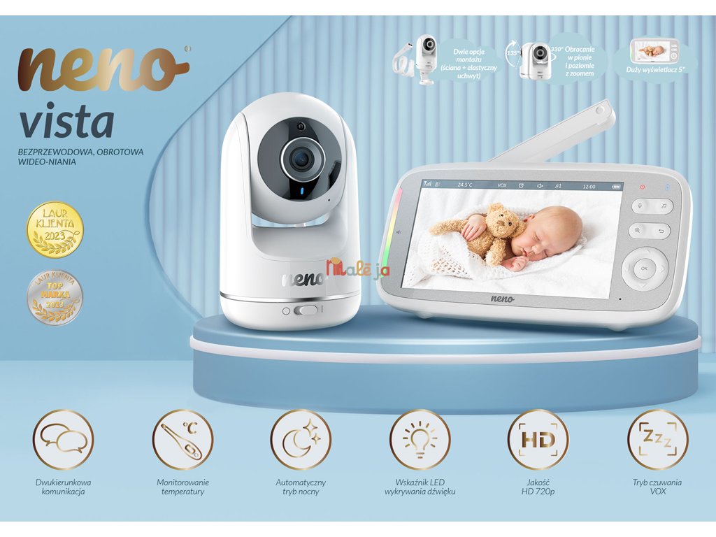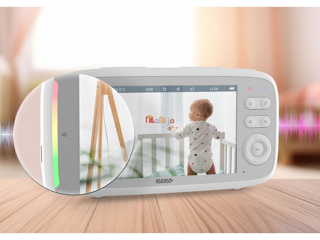 Majte pokoj na duši a prehľad o svojom dieťatku s videopestúnkou Neno Vista – video monitorom s diaľkovým bezdrôtovým prijímačom a funkciami pre bezpečné a pohodlné sledovanie vášho bábätka.