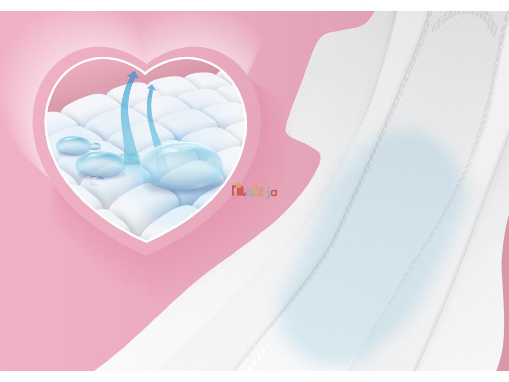 - 4 krídelká: Štyri krídelká sú ďalším bezpečnostným prvkom, ktorý udržiava vložku na mieste bez ohľadu na to, čo robíte. Či už chodíte, ležíte, sedíte, vložka zostáva stabilná a bezpečne na svojom mieste.