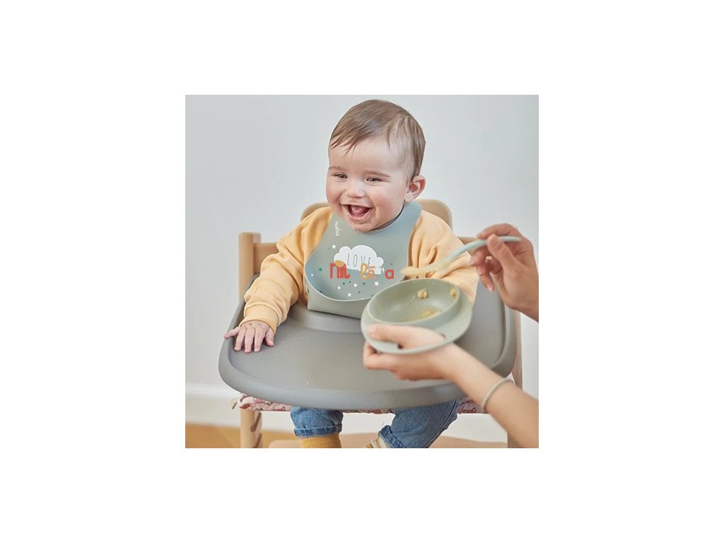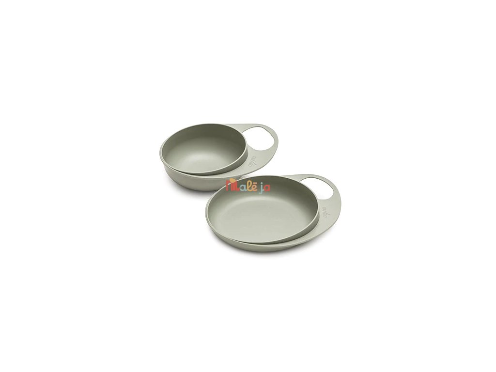 Inovatívny dizajn tohto plastového taniera a misky uľahčuje a podporuje samostatnosť dieťaťa pri jedle.