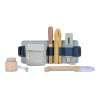 Vďaka pásku s úchytmi na náradie bude mať váš malý opravár všetky svoje nástroje vždy po ruke. Svoje miesto na opasku má meter, kliešte, rezáčik na krabice, pílka aj pilník. Deti sa učia napodobňovaním svojich rodičov a zároveň taká hra rozvíja kreativitu, sústredenie, jemnú motoriku a sociálne zručnosti. Rozmery: 28 x 16 x 8 cm Vhodné pre deti od 3 rokov.