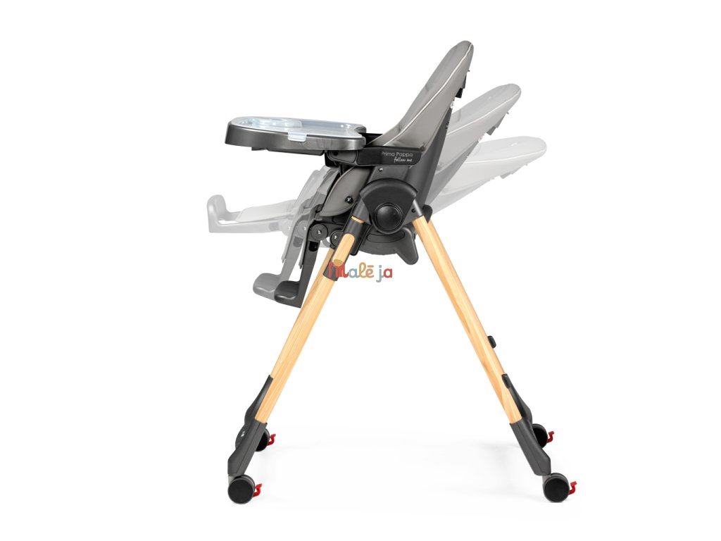 Stolička rastie s Vaším dieťaťom od narodenia až do 3 rokov: počas prvých niekoľkých mesiacov môže byť stolička Prima Pappa Follow Me používaná ako pohodlné, relaxačné naklápacie lehátko. Od 6 mesiacov veku dieťaťa poslúži ako jedálenská stolička pre kŕmenie a hranie a neskôr, bez polohovacieho tácku, na sedenie pri stole spoločne s dospelými. Vďaka 4 kolieskam možno stoličku ľahko premiestňovať po vašej domácnosti. Celú stoličku možno výškovo nastaviť do 7 pozícií, jej opierka nôh je nastaviteľná do 3 pozícií a chrbtová opierka do 5 pozícií (viac ako 150 °). Pre jednoduchú údržbu je polstrovanie vyrobené z PVC a Eco-kože. Dvojitá polohovateľná a odnímateľná tácka s držiakom na fľašu je vhodná aj do umývačky riadu a v spodnej časti je opatrená bezpečnostnou prepážkou, ktorá zabraňuje vykĺznutiu dieťaťa z stoličky. V zloženom stave stojí samostatne a zaberá málo miesta.