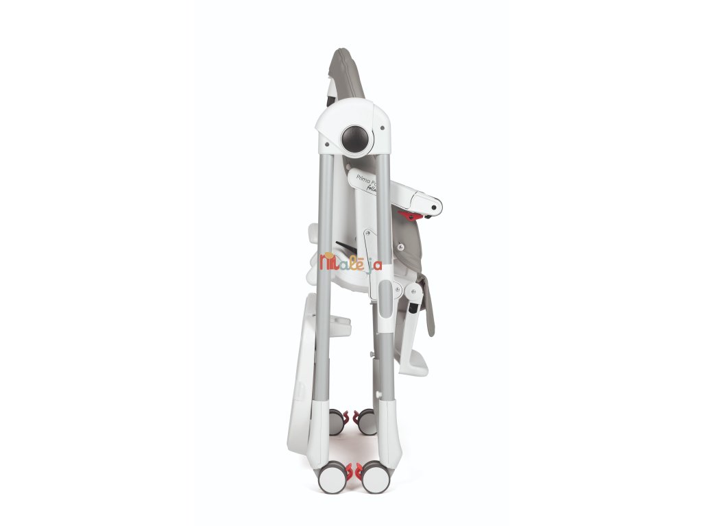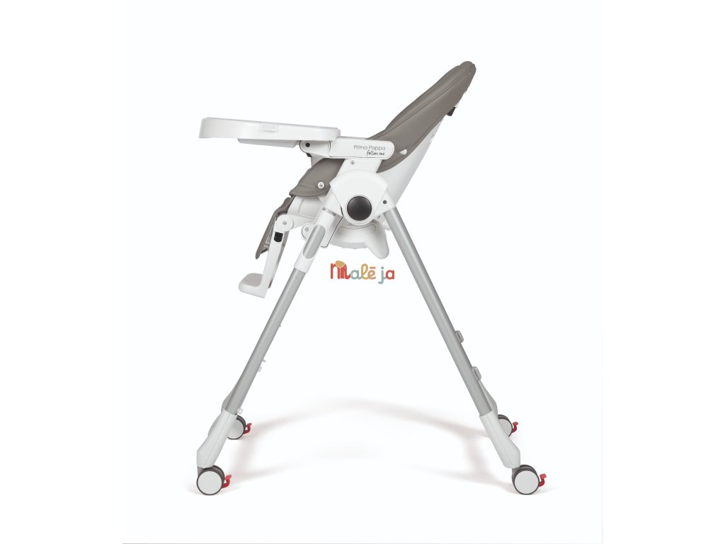 Stolička rastie s Vaším dieťaťom od narodenia až do 3 rokov: počas prvých niekoľkých mesiacov môže byť stolička Prima Pappa Follow Me používaná ako pohodlné, relaxačné naklápacie lehátko. Od 6 mesiacov veku dieťaťa poslúži ako jedálenská stolička pre kŕmenie a hranie a neskôr, bez polohovacieho tácku, na sedenie pri stole spoločne s dospelými. Vďaka 4 kolieskam možno stoličku ľahko premiestňovať po vašej domácnosti. Celú stoličku možno výškovo nastaviť do 7 pozícií, jej opierka nôh je nastaviteľná do 3 pozícií a chrbtová opierka do 5 pozícií (viac ako 150 °). Pre jednoduchú údržbu je polstrovanie vyrobené z PVC a Eco-kože. Dvojitá polohovateľná a odnímateľná tácka s držiakom na fľašu je vhodná aj do umývačky riadu a v spodnej časti je opatrená bezpečnostnou prepážkou, ktorá zabraňuje vykĺznutiu dieťaťa z stoličky. V zloženom stave stojí samostatne a zaberá málo miesta.