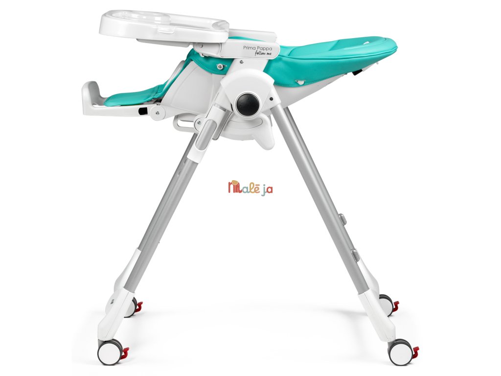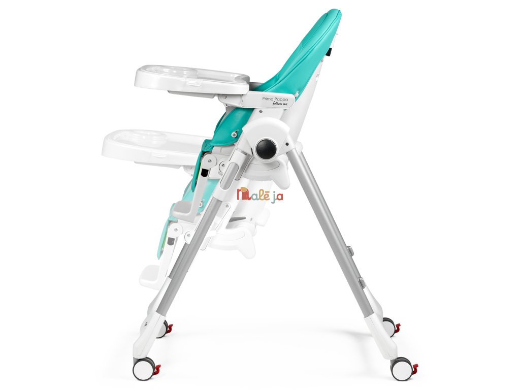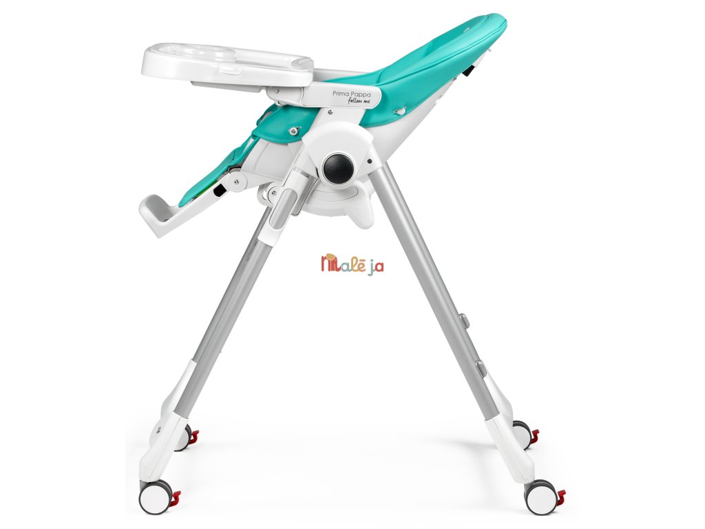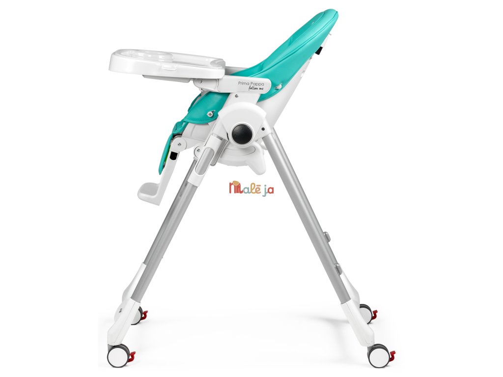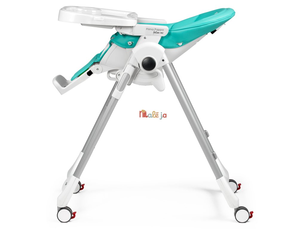 Stolička rastie s Vaším dieťaťom od narodenia až do 3 rokov: počas prvých niekoľkých mesiacov môže byť stolička Prima Pappa Follow Me používaná ako pohodlné, relaxačné naklápacie lehátko. Od 6 mesiacov veku dieťaťa poslúži ako jedálenská stolička pre kŕmenie a hranie a neskôr, bez polohovacieho tácku, na sedenie pri stole spoločne s dospelými. Vďaka 4 kolieskam možno stoličku ľahko premiestňovať po vašej domácnosti. Celú stoličku možno výškovo nastaviť do 7 pozícií, jej opierka nôh je nastaviteľná do 3 pozícií a chrbtová opierka do 5 pozícií (viac ako 150 °). Pre jednoduchú údržbu je polstrovanie vyrobené z PVC a Eco-kože. Dvojitá polohovateľná a odnímateľná tácka s držiakom na fľašu je vhodná aj do umývačky riadu a v spodnej časti je opatrená bezpečnostnou prepážkou, ktorá zabraňuje vykĺznutiu dieťaťa z stoličky. V zloženom stave stojí samostatne a zaberá málo miesta.