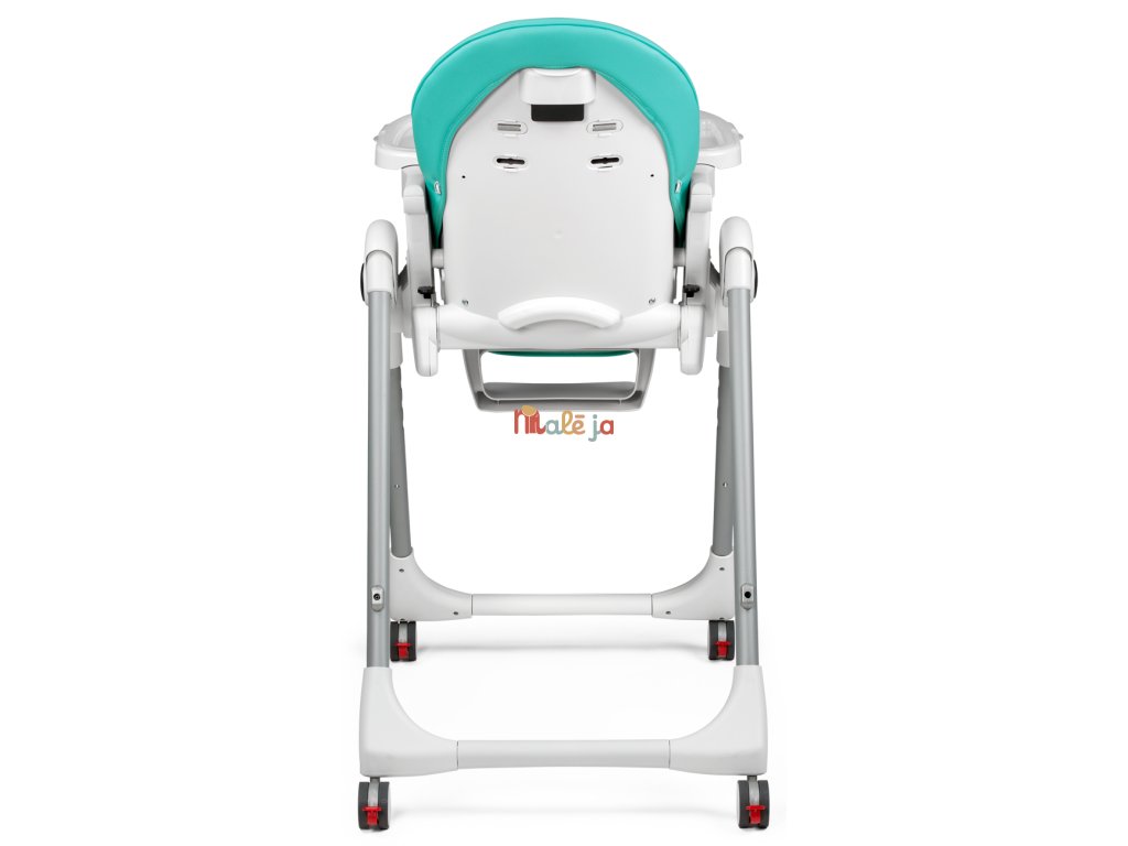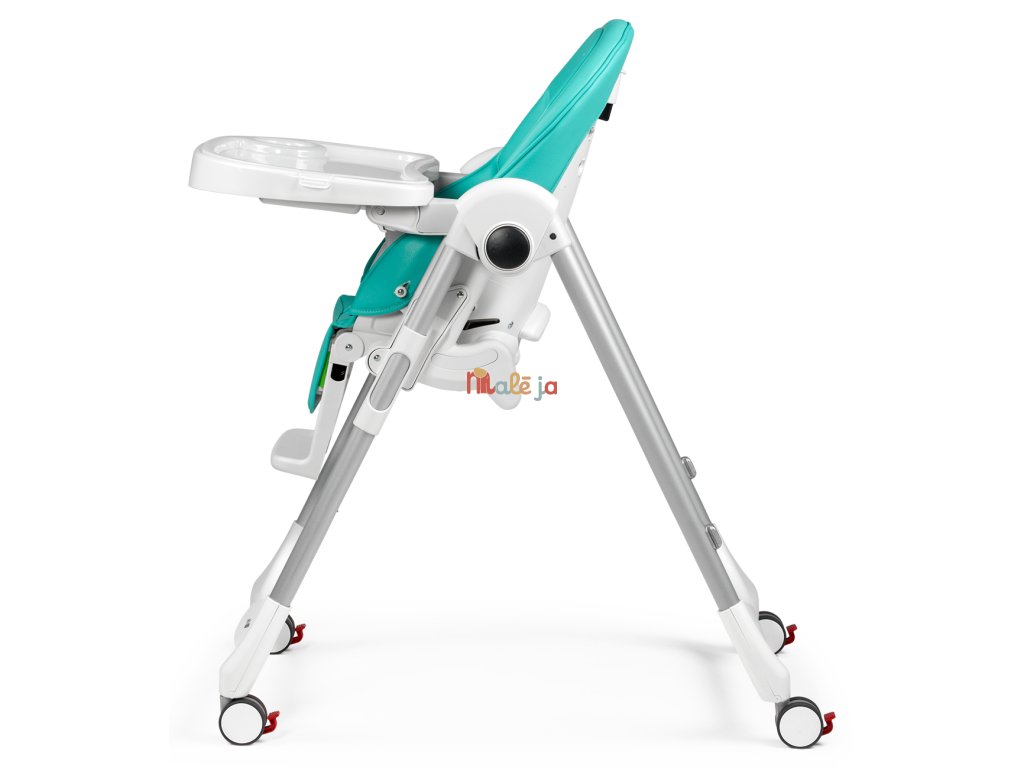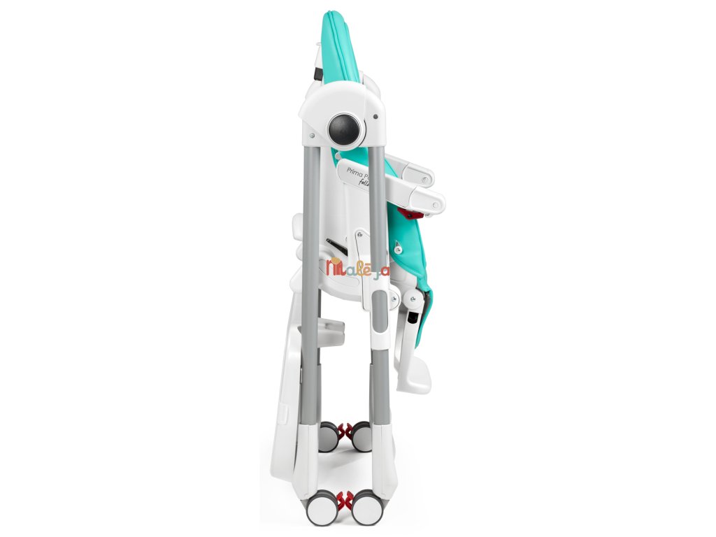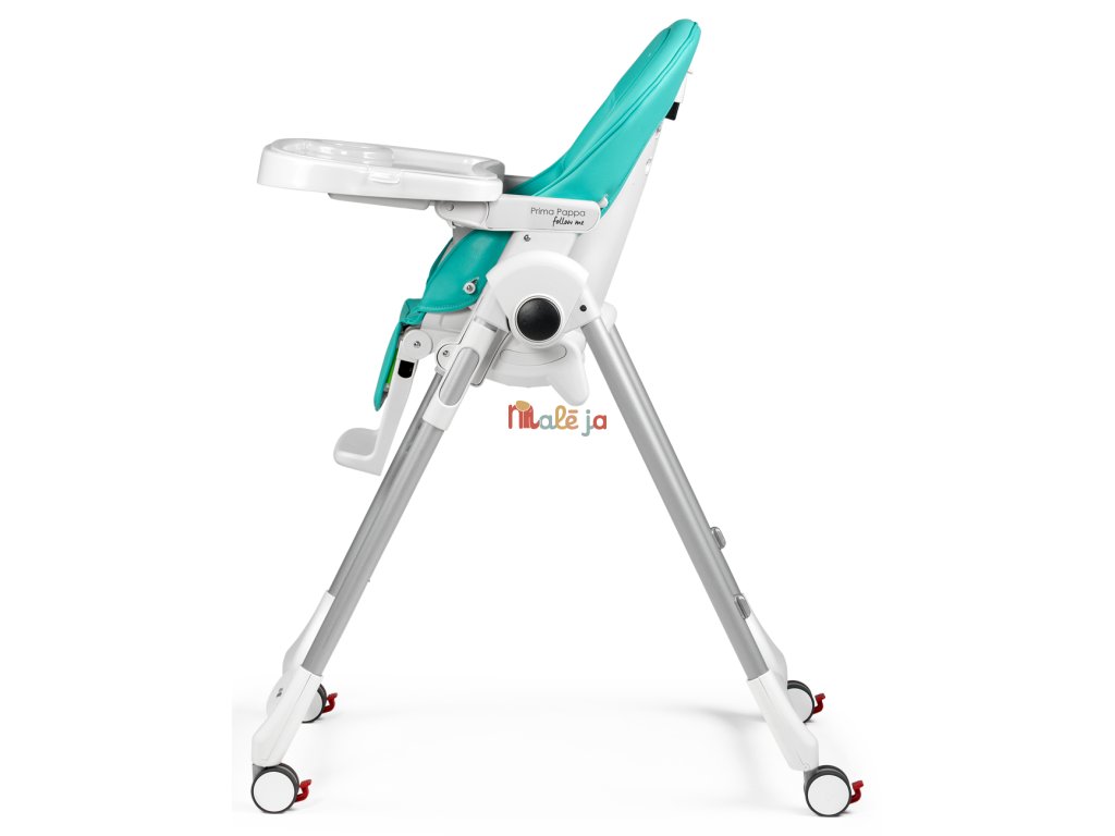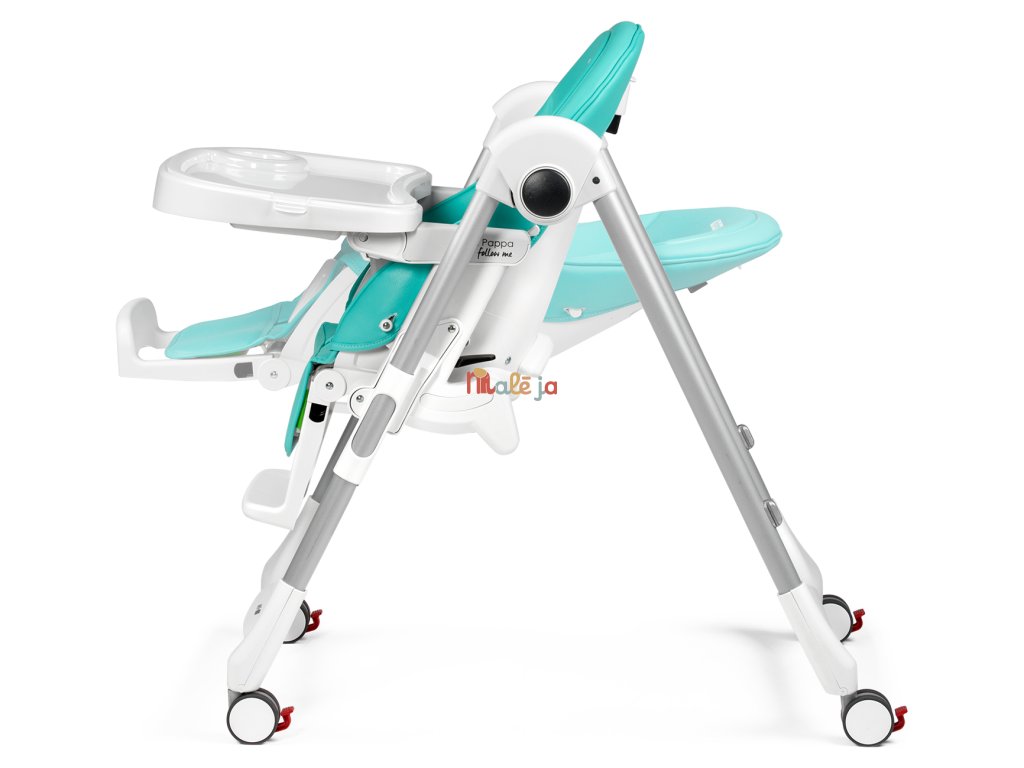 Stolička rastie s Vaším dieťaťom od narodenia až do 3 rokov: počas prvých niekoľkých mesiacov môže byť stolička Prima Pappa Follow Me používaná ako pohodlné, relaxačné naklápacie lehátko. Od 6 mesiacov veku dieťaťa poslúži ako jedálenská stolička pre kŕmenie a hranie a neskôr, bez polohovacieho tácku, na sedenie pri stole spoločne s dospelými. Vďaka 4 kolieskam možno stoličku ľahko premiestňovať po vašej domácnosti. Celú stoličku možno výškovo nastaviť do 7 pozícií, jej opierka nôh je nastaviteľná do 3 pozícií a chrbtová opierka do 5 pozícií (viac ako 150 °). Pre jednoduchú údržbu je polstrovanie vyrobené z PVC a Eco-kože. Dvojitá polohovateľná a odnímateľná tácka s držiakom na fľašu je vhodná aj do umývačky riadu a v spodnej časti je opatrená bezpečnostnou prepážkou, ktorá zabraňuje vykĺznutiu dieťaťa z stoličky. V zloženom stave stojí samostatne a zaberá málo miesta.
