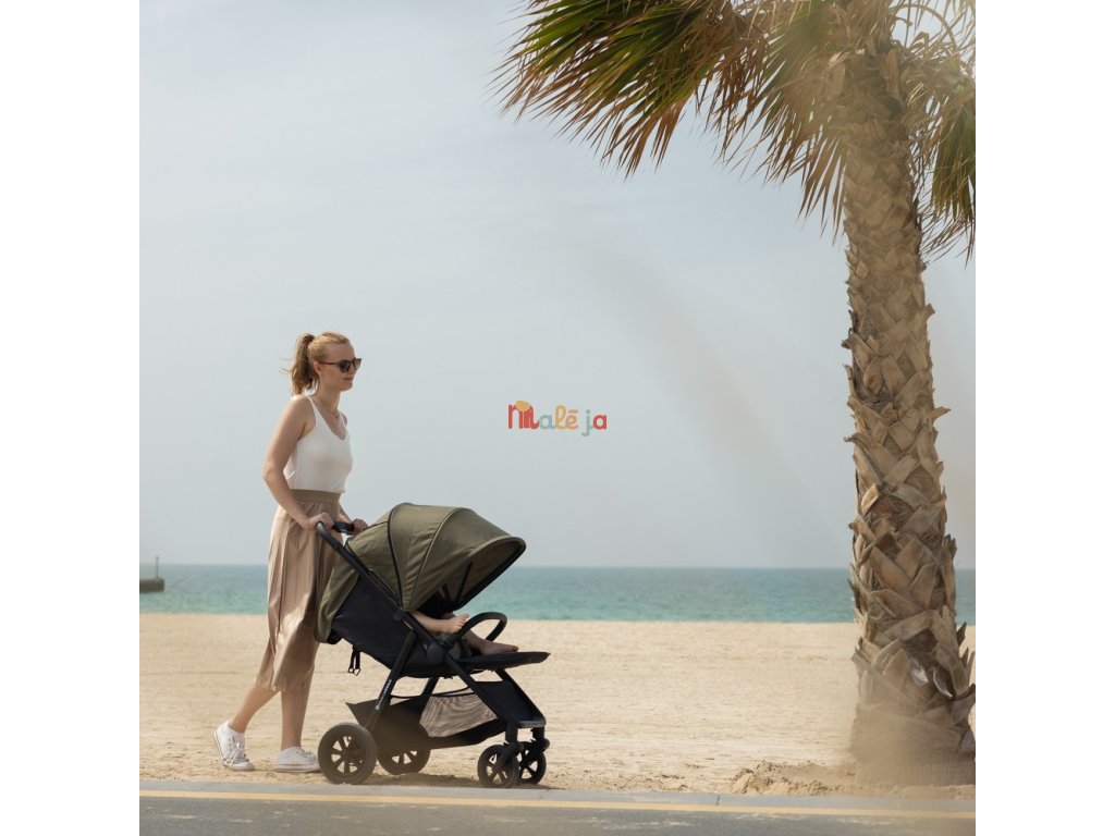 Praktický, priestranný, odpružený športový kočík s nafukovacími kolieskami je vhodný do terénu aj na námestia s kamennými dlažbami. Príjemne prekvapí jeho jednoduchá manipulácia a skladanie. Napriek tomu, že sa jedná o väčší športový kočík, je pomerne ľahký a po zložení nezaberá veľa miesta.