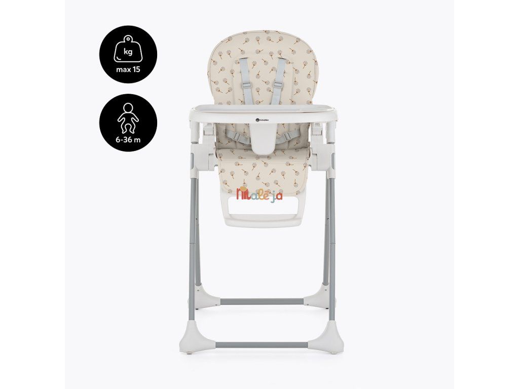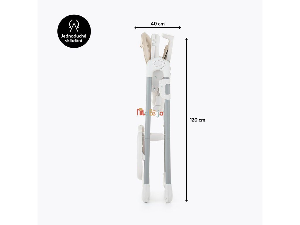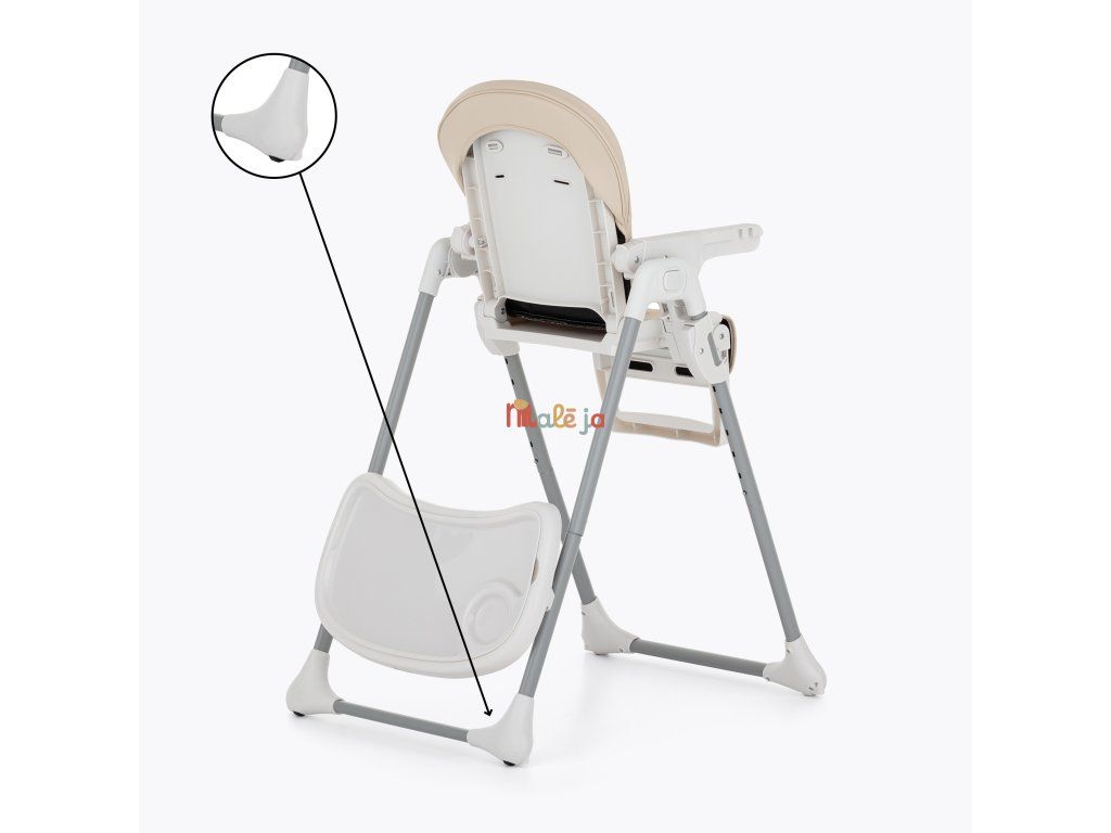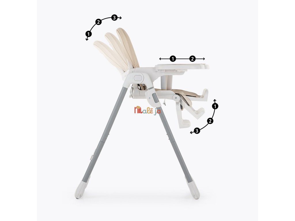 Starostlivosť o životné prostredie, ktorú sme pri tvorbe tejto stoličky zohľadnili, nezatienila najdôležitejšie aspekty výrobku - bol totiž navrhnutý tak, aby čo najbezpečnejšie zlepšil každodenný život dieťatka aj rodičov. Stolička má všetky funkcie, ktoré uľahčujú každodenné kŕmenie: Je možné ju ľahko zložiť a vyčistiť, má 5-bodové bezpečnostné pásy, nastaviteľnú opierku chrbta, nastaviteľnú opierku nôh, nastaviteľnú výšku, dve polohy pre podnos s hornou časťou, ktorú možno umývať v umývačke riadu. Stabilná konštrukcia stoličky zaistí bezpečnosť vášho dieťaťa bez ohľadu na to, aké je aktívne alebo pohyblivé. Vysokokvalitné vyhotovenie, premyslená konštrukcia, moderný a originálny dizajn a kompaktné skladanie sú nadčasové vlastnosti, ktoré zabezpečia pohodlie pre vaše dieťa od okamihu, keď sa naučí sedieť.