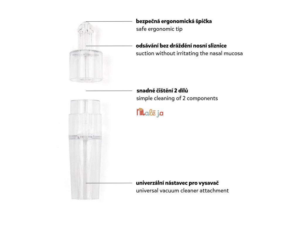 - špeciálny tvar a materiál odsávačky zabraňuje podráždeniu nosa a poškodeniu sliznice