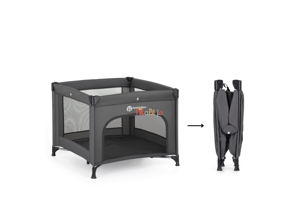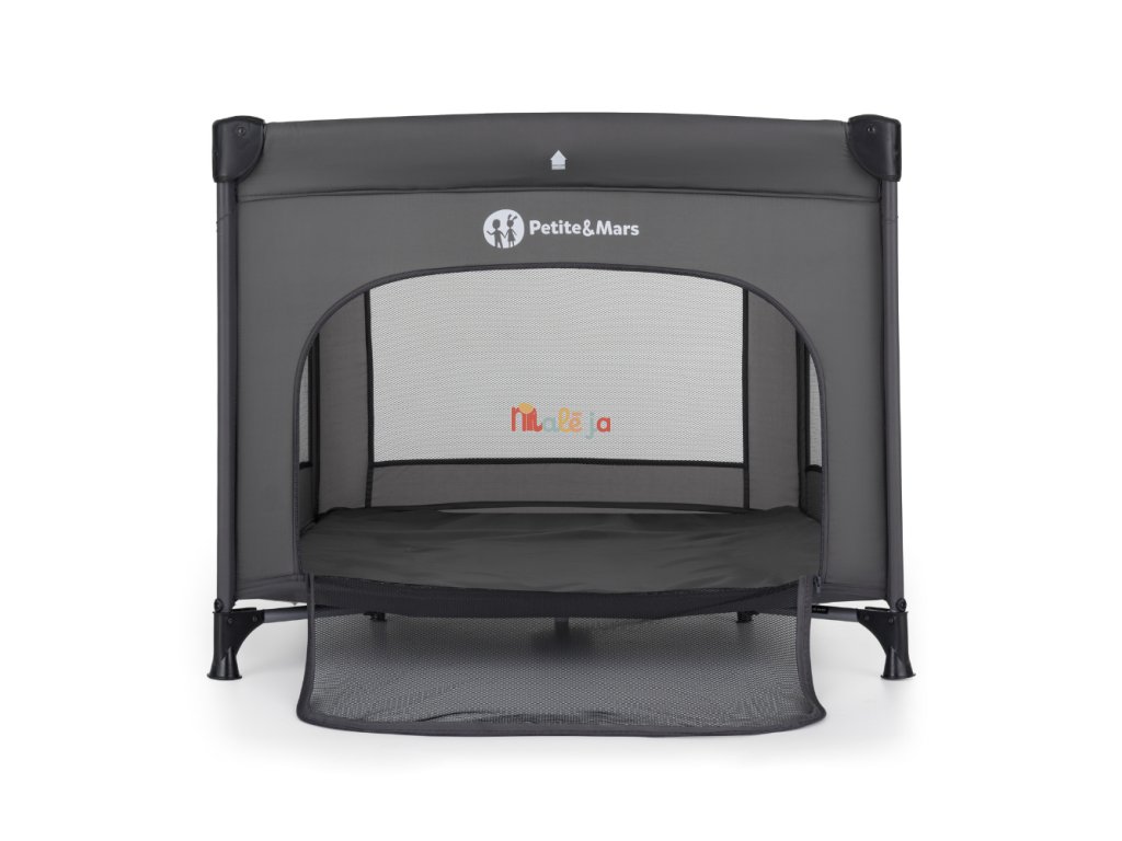 Ohrádka ponúka dostatok priestoru na hranie s hračkami aj na krátky oddych. Sieťované bočné strany zabezpečujú optimálnu cirkuláciu vzduchu a umožňujú dieťaťu sledovať okolie. Praktické otváracie čelo uľahčuje samostatný vstup a výstup, čo ocenia najmä väčšie deti. Moderný, neutrálny dizajn v tmavošedej farbe sa ľahko zladí s každým interiérom.
