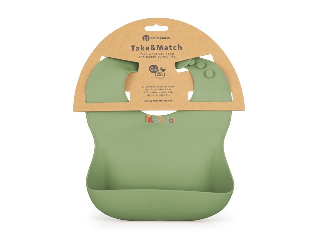 Podbradník je vyrobený z potravinárskeho silikónu bez obsahu BPA. Je určený pre malé deti od 6 mesiacov, ktorým sa zavádzajú prvé príkrmy, a pre tie, ktoré sa už úspešne učia samostatne jesť. Má nastaviteľné zapínanie, ktoré umožňuje prispôsobiť ho veľkosti krku dieťaťa. To znamená, že podbradník rastie spolu s dieťatkom. Vďaka ergonomickému tvaru a mäkkému materiálu sa podbradník pohodlne nosí a neobmedzuje pohyb dieťaťa pri jedení. Dá sa tiež zrolovať, a preto nezaberá veľa miesta v taške, keď idete na prechádzku alebo na výlet.