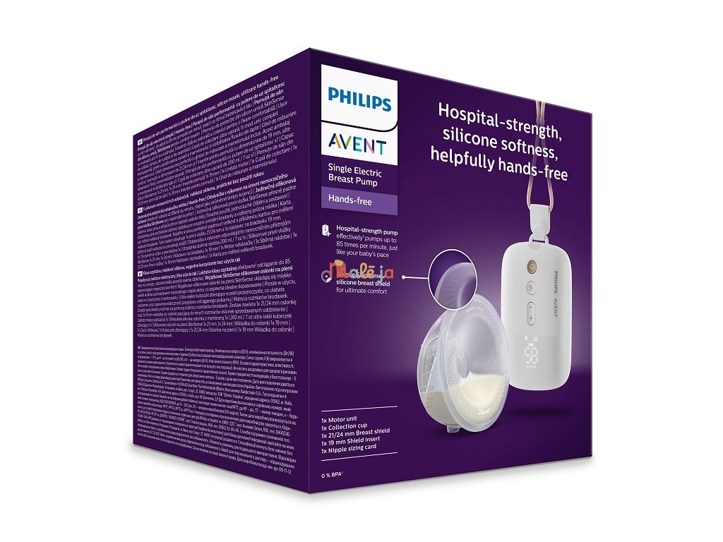 Jednoduchá elektrická odsávačka mlieka Philips Avent Hands-free je určená na efektívne a pohodlné odsávanie mlieka. Napodobňuje rytmus vášho dieťaťa a vďaka výkonu, jemnosti a ľahkosti je ideálnym spoločníkom pri odsávaní bez použitia rúk.