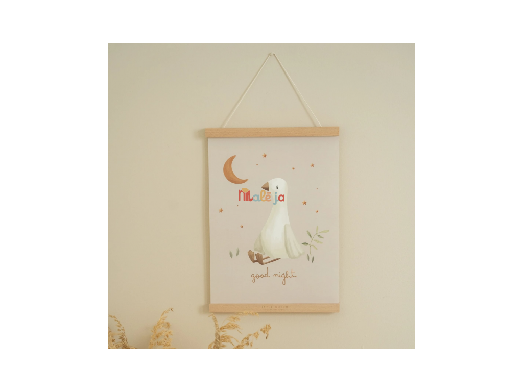 Pre ľahké zavesenie plagát skombinujte so samostatne predávaným Little Dutch dreveným vešiakom na plagáty A3.