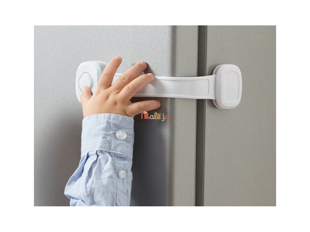 Samolepiaca poistka bráni deťom dostať sa do skriniek s dvierkami, do chladničky a pod. Poistku ľahko inštalujete na dvere a bok skrinky bez nutnosti vŕtania. Dospelý dokáže poistku ľahko otvoriť vďaka "neviditeľnému" spôsobu otvárania - zámok poistky je vyrobený z pružného materiálu a otvára sa súčasným stlačením jednou rukou z hornej a spodnej strany zámku.