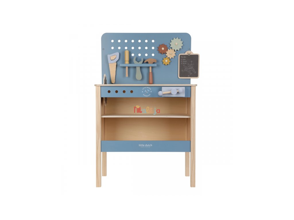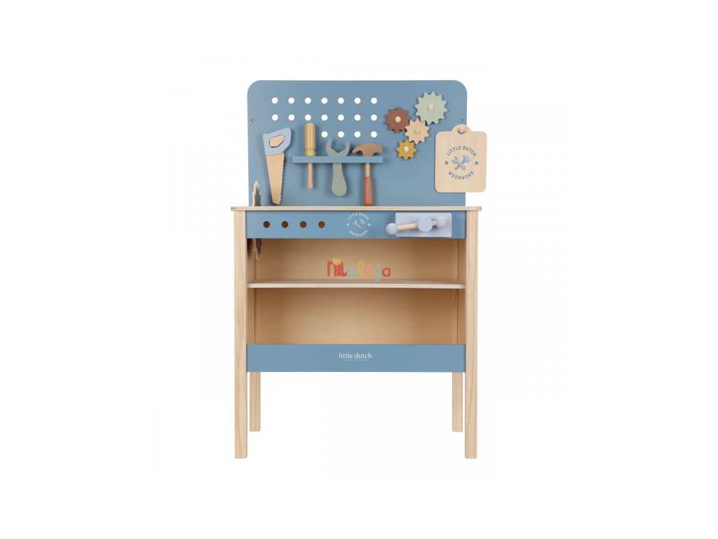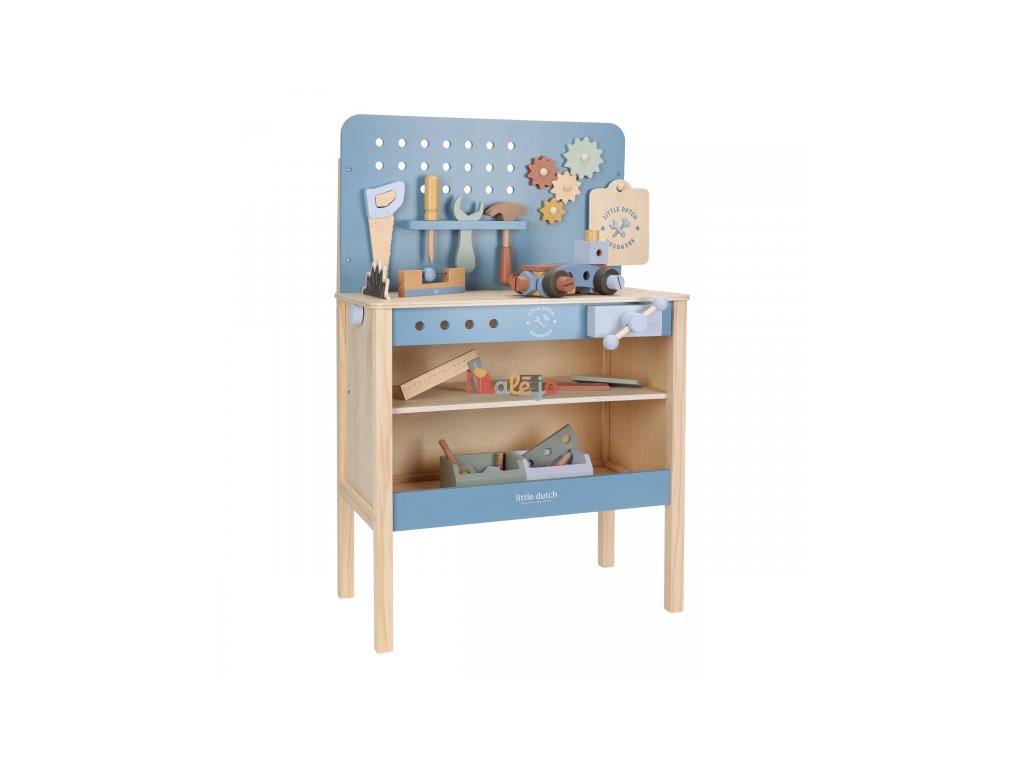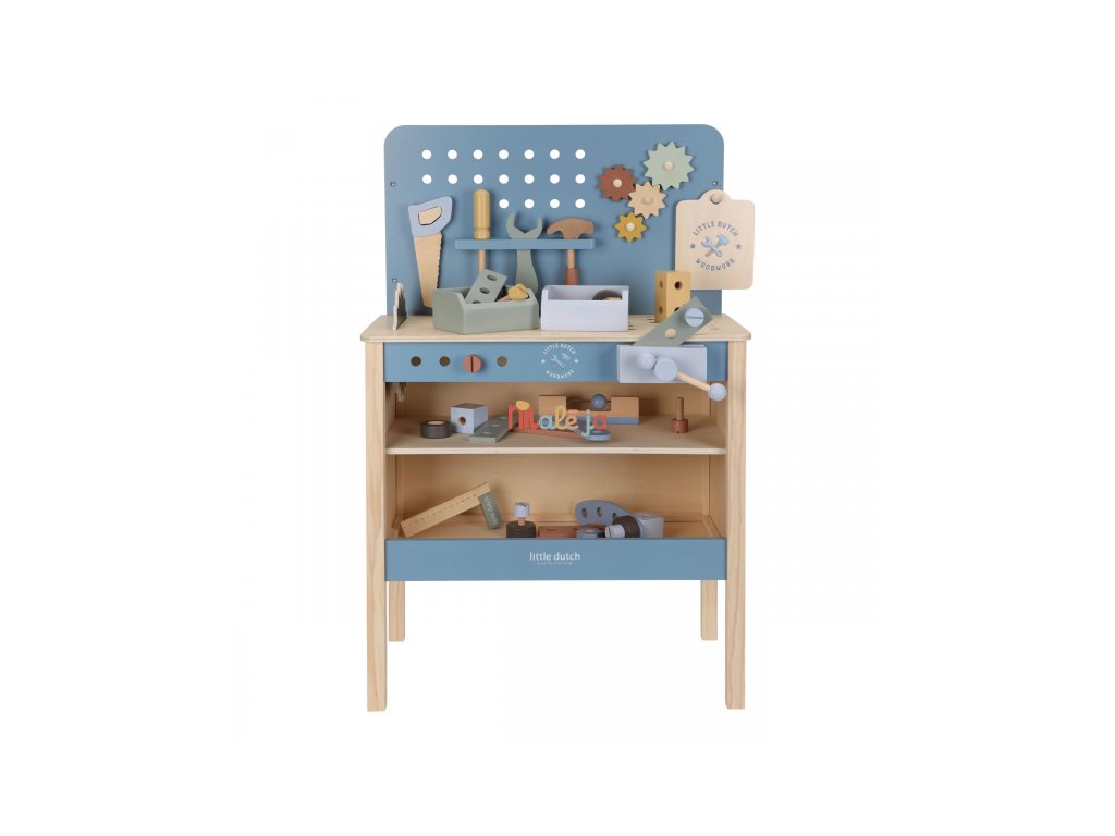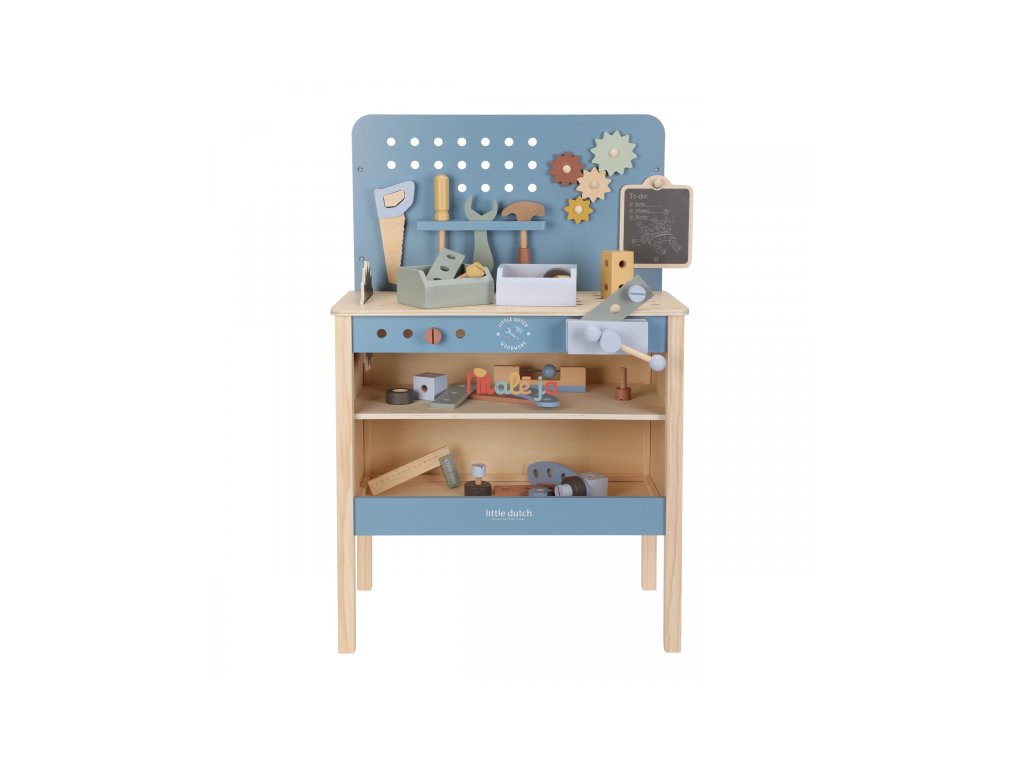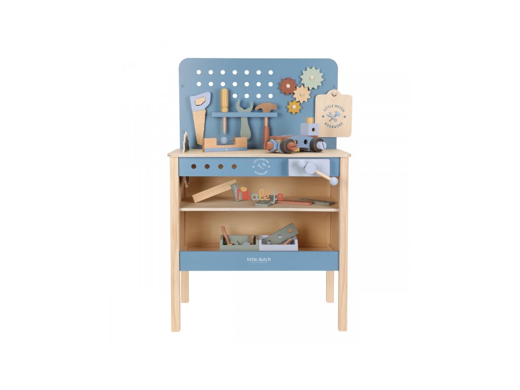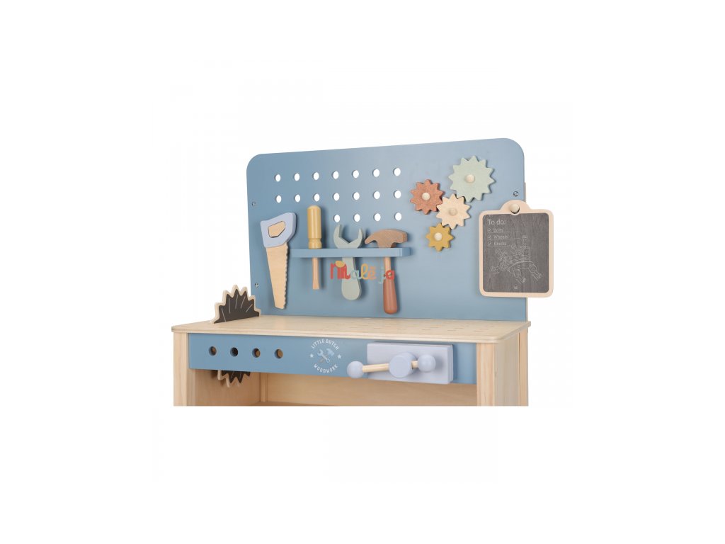 Detský ponk pre malých domácich majstrov v kvalitnom drevenom prevedení s náradím a ďalším príslušenstvom. Deti si môžu z jednotlivých dielov zostaviť napríklad autíčko alebo opraviť čokoľvek je potrebné. Súčasťou bohatého príslušenstva je detské kladivko, kľúč, skrutkovač, pílka, vodováha, meter, matice a skrutky. Malé deti milujú napodobňovanie svojich rodičov pri ich činnostiach a tento ponk s náradím im umožní zostaviť a skonštruovať rôzne veci, rovnako ako to vedia ich rodičia! Aktivitou pri skrutkovaní a zostavovaní častí dohromady a ich opätovnému rozpojovaniu sa učia jemnej motorike a sústredení, kreativite a predstavivosti. Skvelý spôsob, ako deťom ponúknuť kreatívny priestor na tvorenie a objavovanie. Rozmery: V 86 x Š 55 x H 30,5 cm Vyrobené z odolného FSC certifikovaného dreva. Vhodné pre deti od 3 rokov.